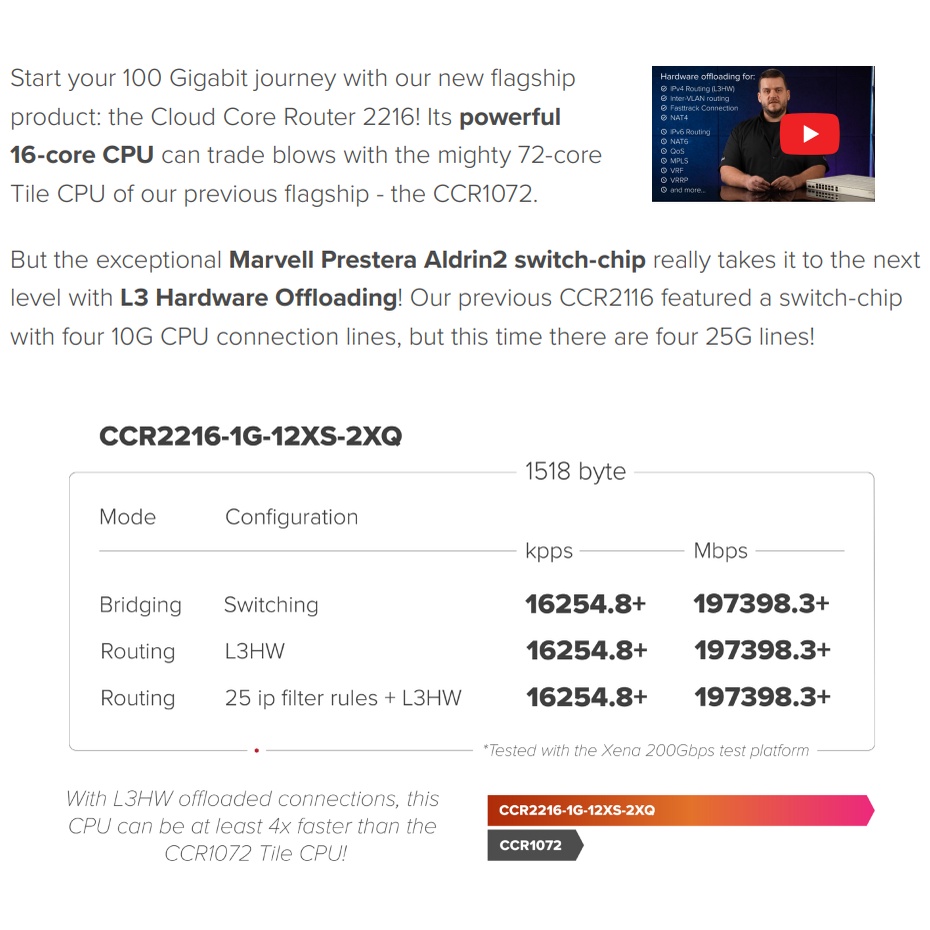 【MikroTik台灣代理】公司貨 CCR2216-1G-12XS-2XQ MikroTik 新旗艦 高性能路由器