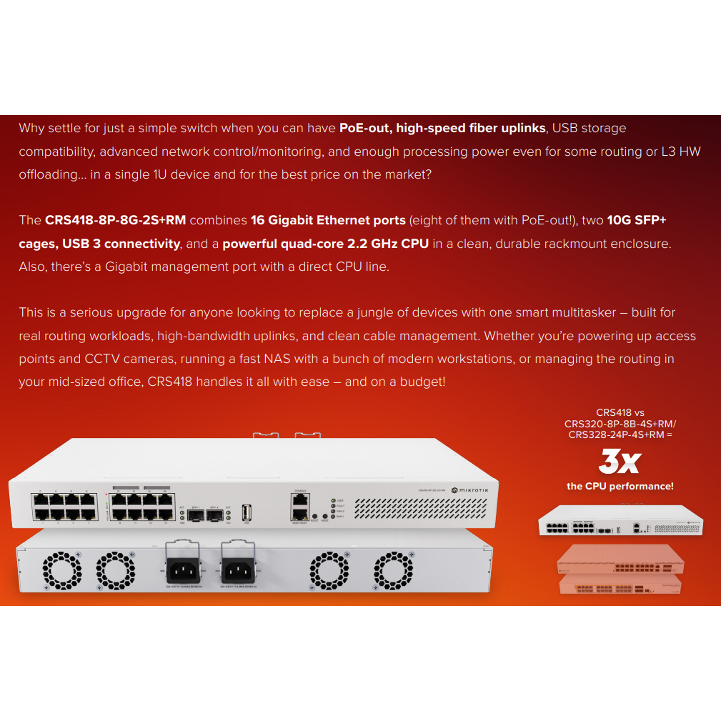 【MikroTik 台灣代理】公司貨 CRS418-8P-8G-2S+RM 路由器 / POE交換器