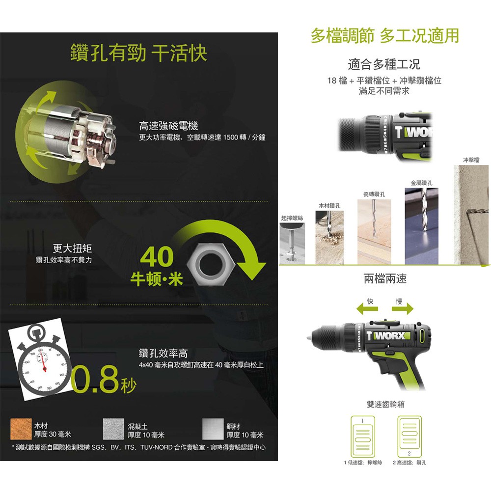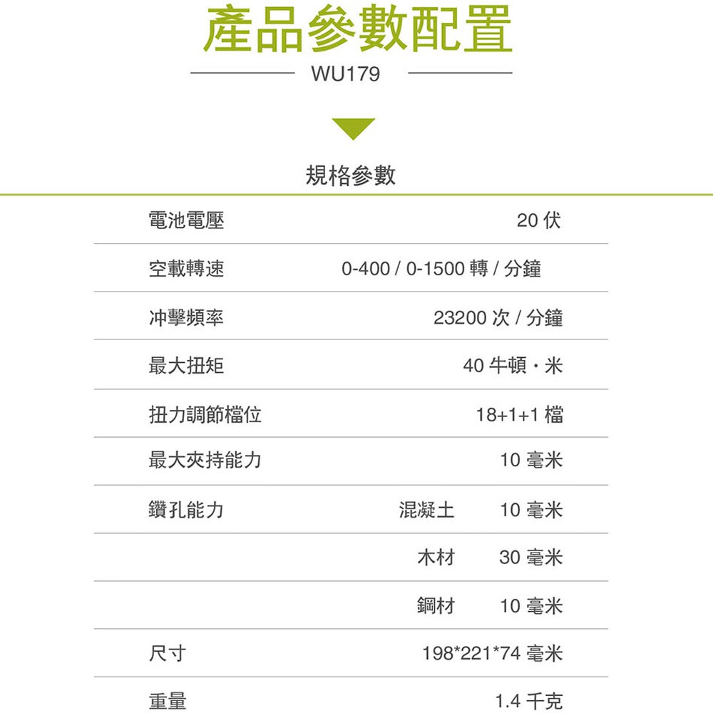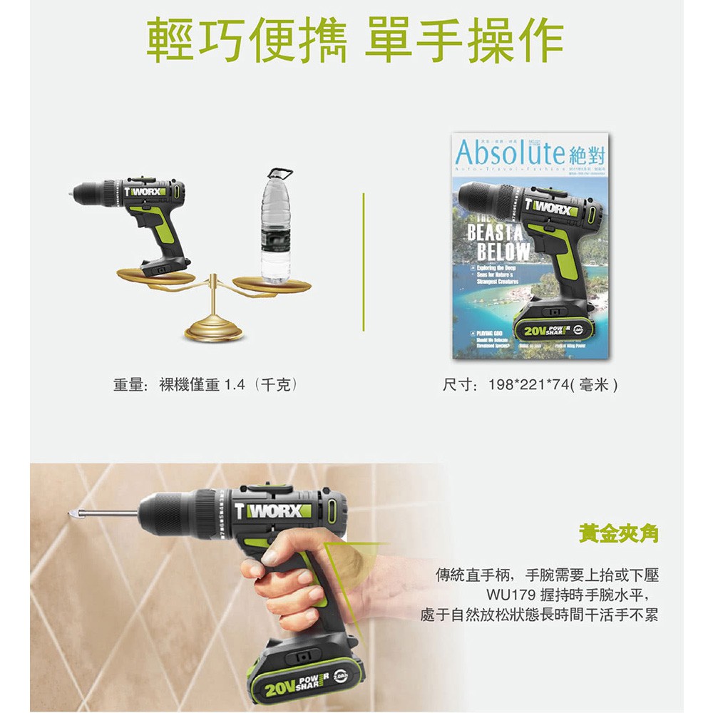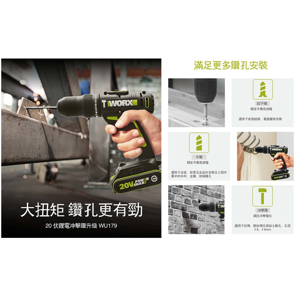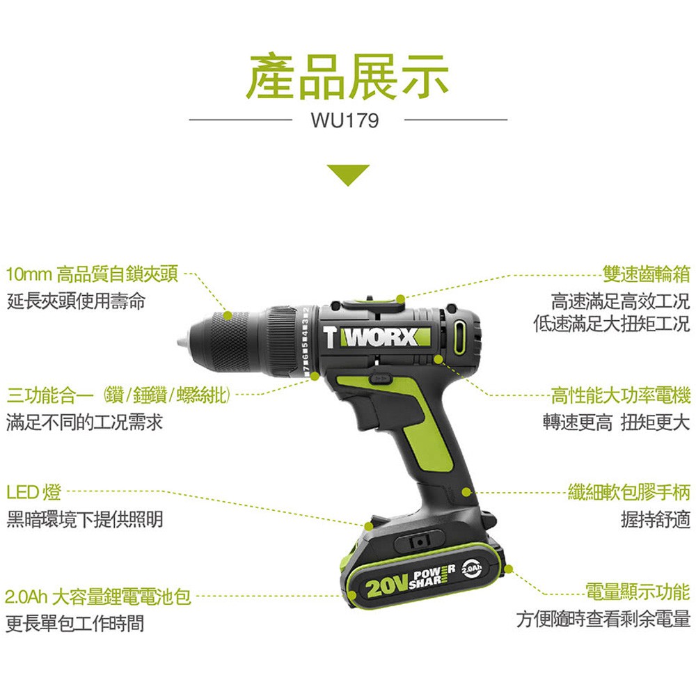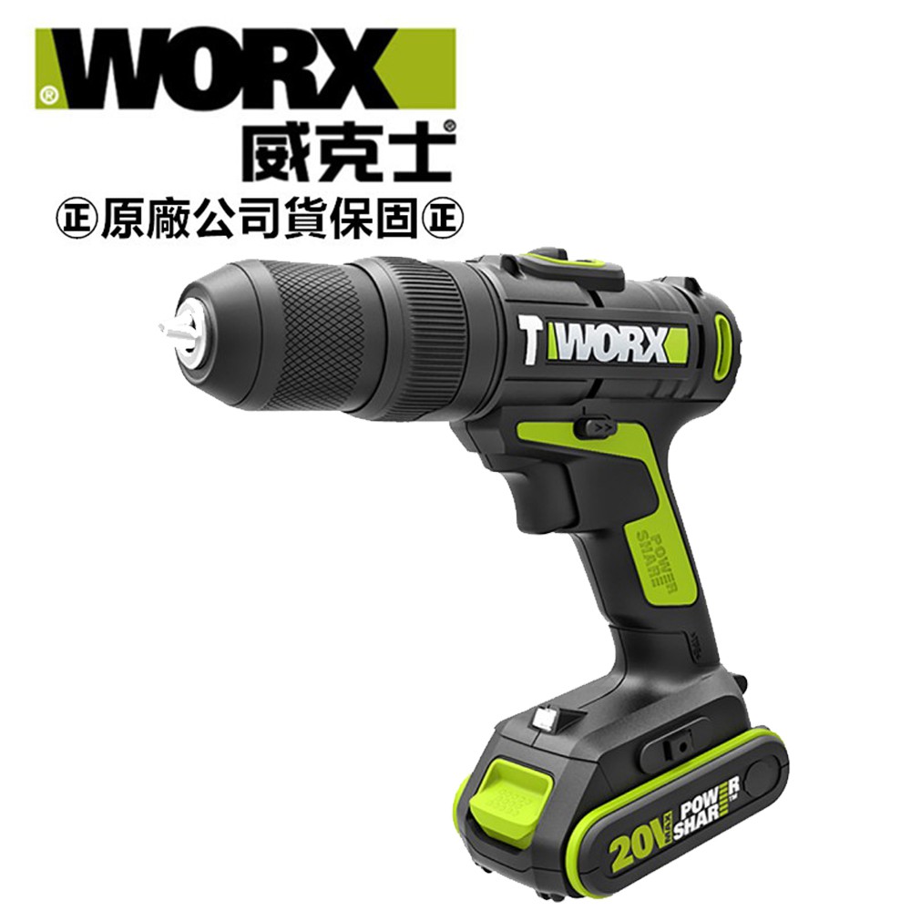 台北益昌 WORX 威克士 20V 10mm 鋰電 雙速 電鑽 雙電池 套裝組 (WU179) 原廠公司貨