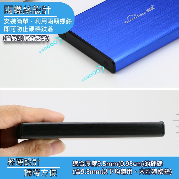 【免運費 12H出貨 台灣JMS578晶片】鋁合金外殼 藍碩 USB 3.0 2.5吋 硬碟外接盒 9.5mm