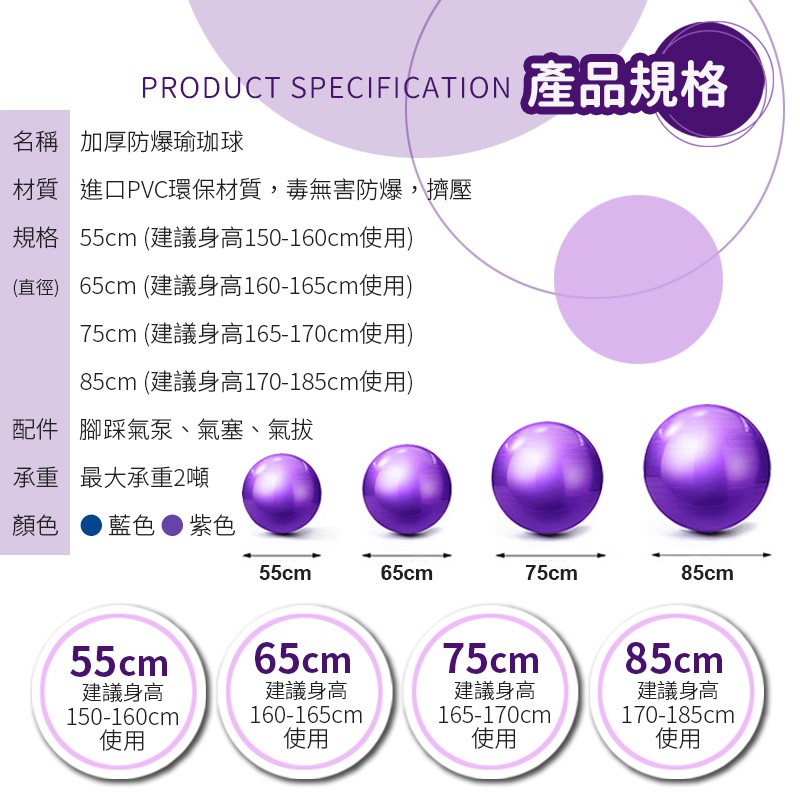 55CM瑜珈球-紫色(送充氣工具