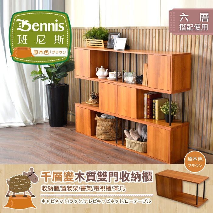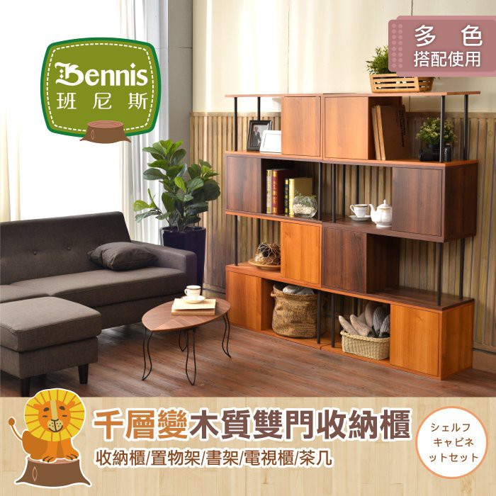 【班尼斯】千層變雙門台灣獨家製造收納組合櫃/茶几/萬用置物架/收納架/書架/展示櫃/組合櫃/雜誌櫃/鞋櫃架
