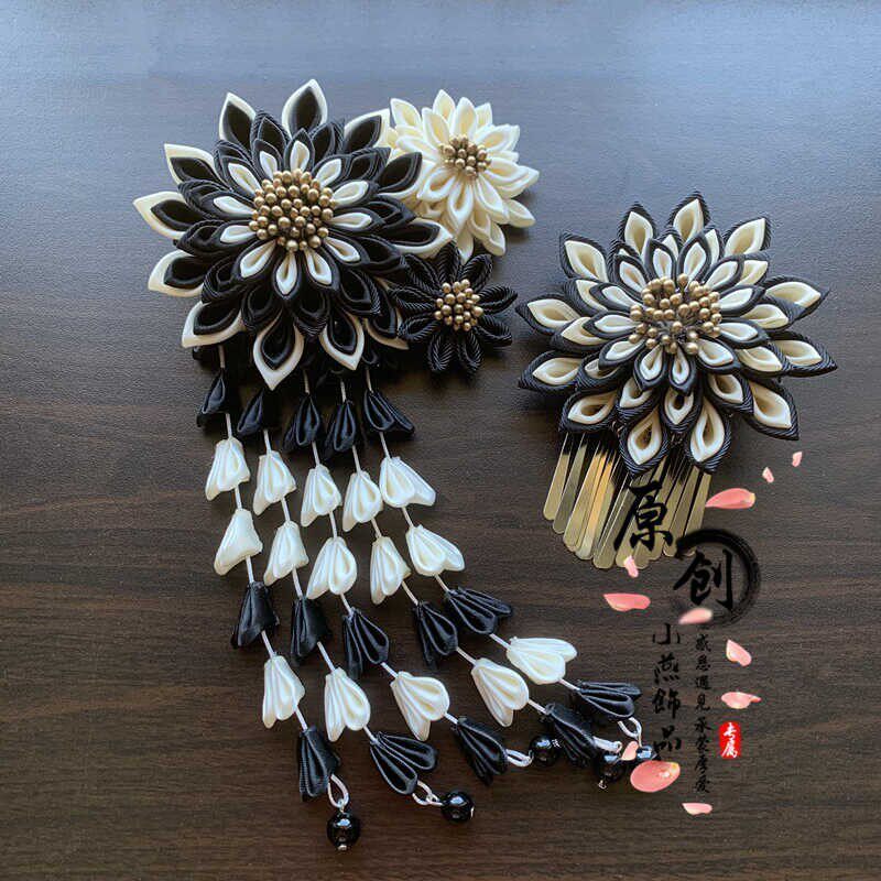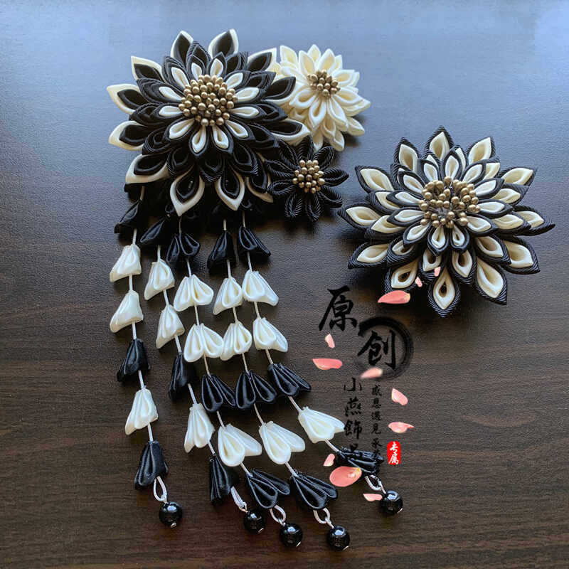 原创新款头饰黑色加米色流苏发夹发饰拍影头饰品