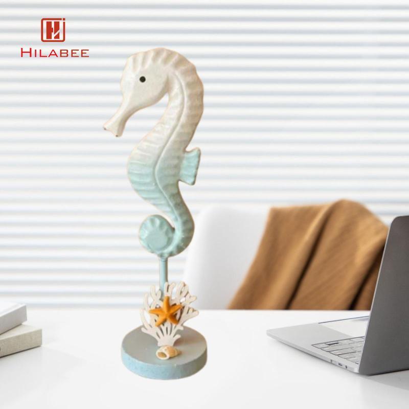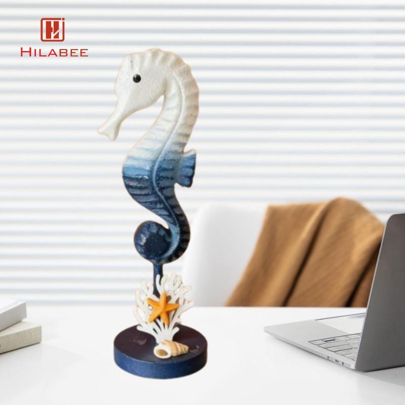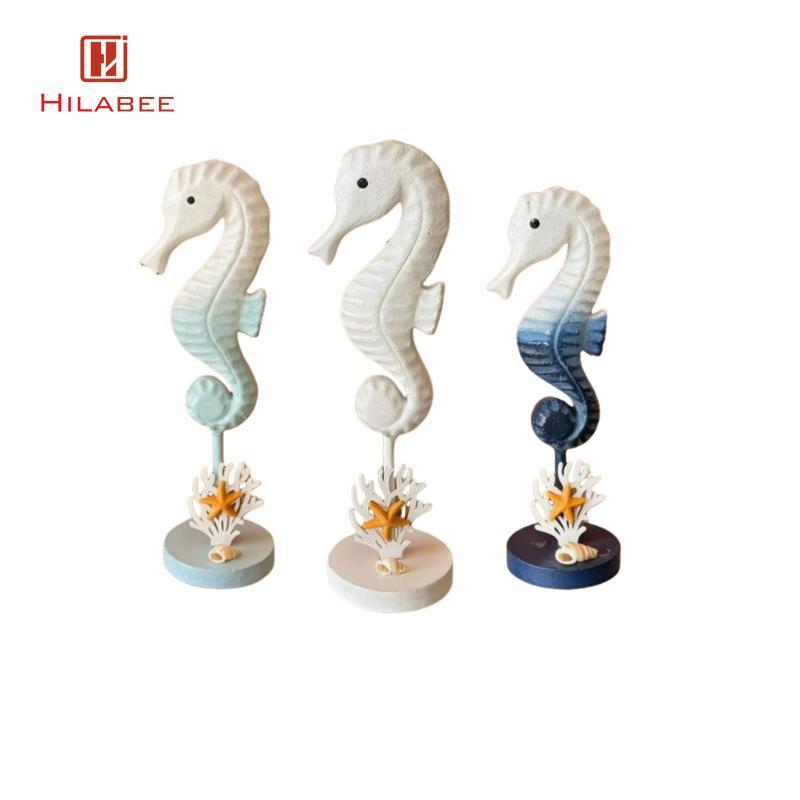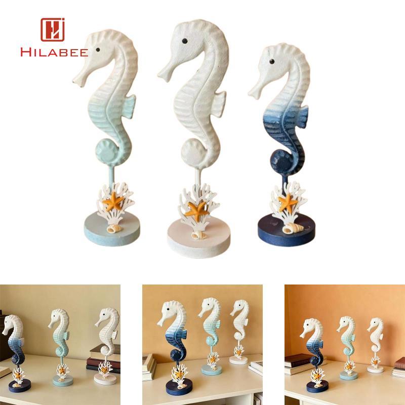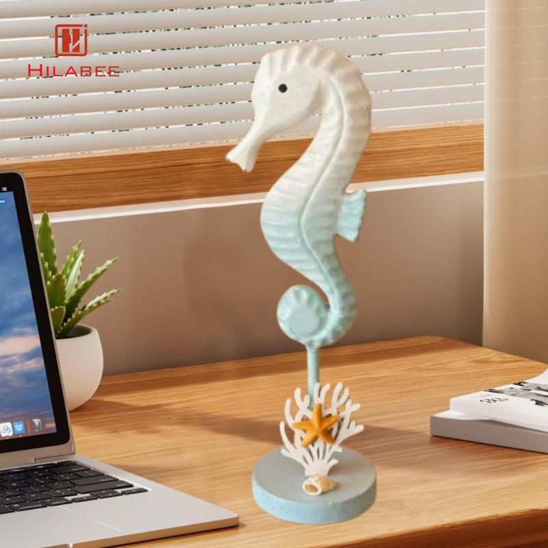 [UsusexaMY] 仿古海馬裝飾手工木製雕塑裝飾海馬雕像適用於海洋客廳沙灘屋裝飾