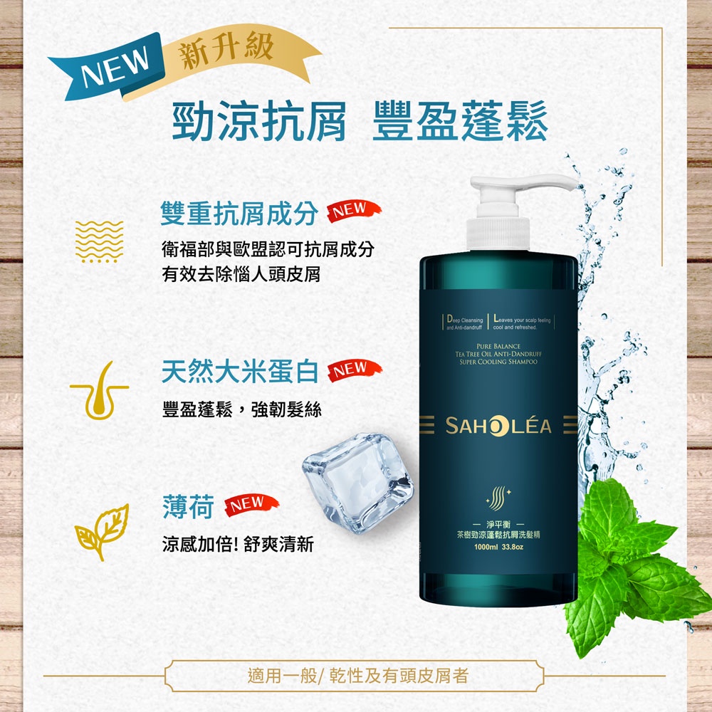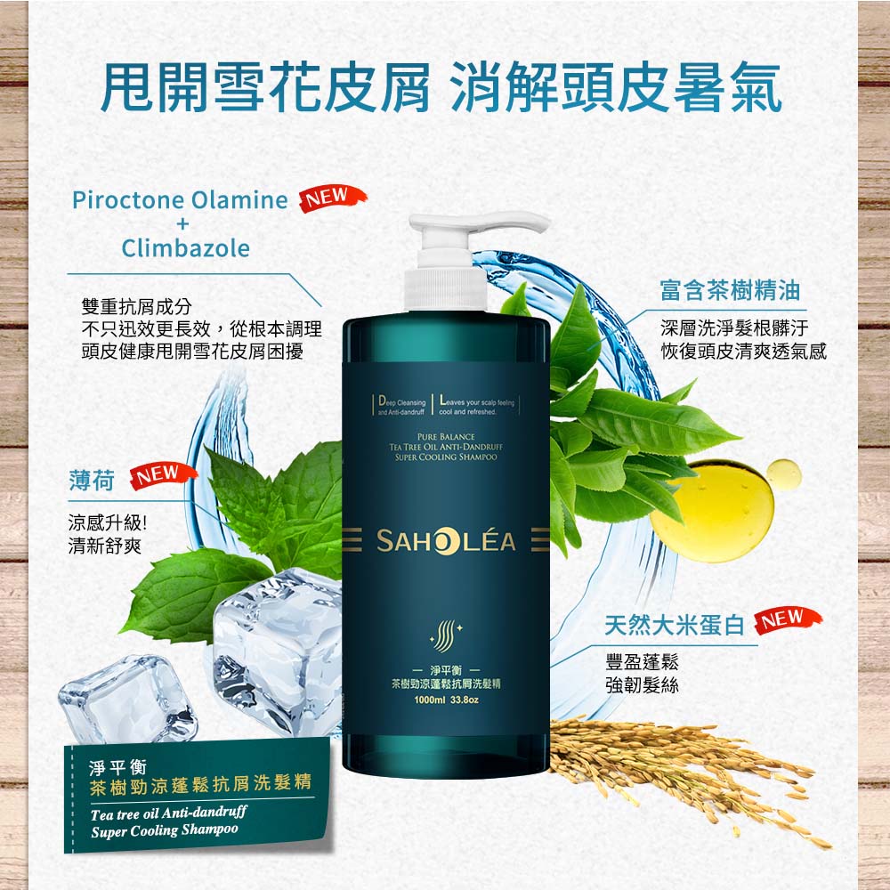 【SAHOLEA森歐黎漾】淨平衡茶樹勁涼蓬鬆抗屑洗髮精1000ml(大容量涼感配方)