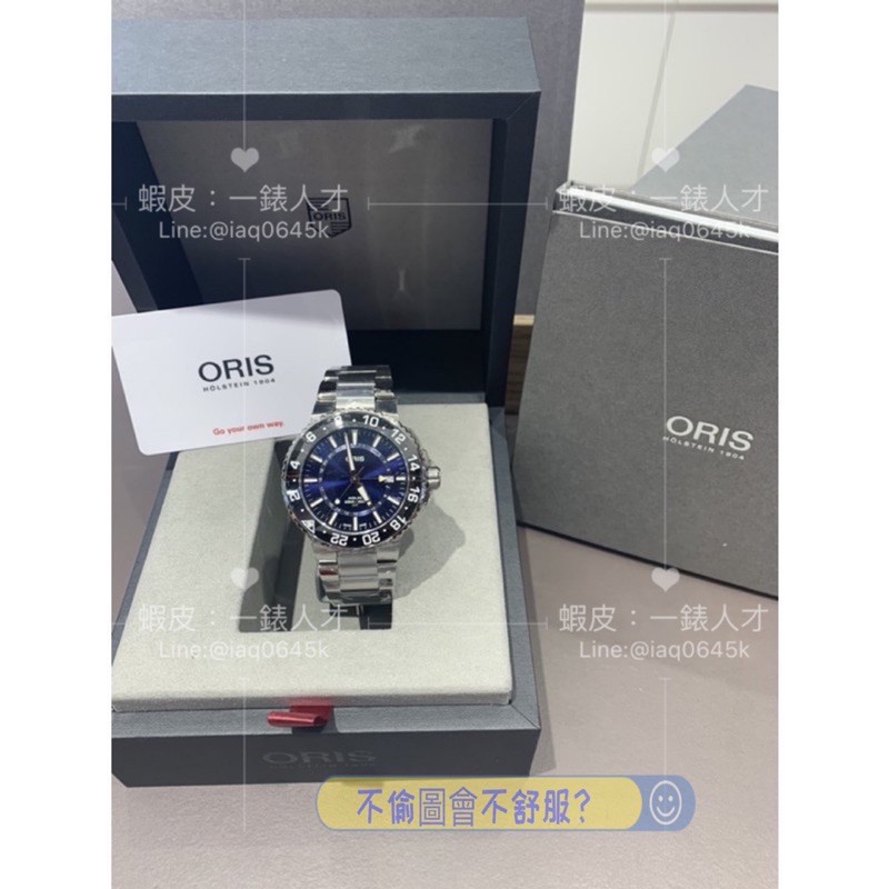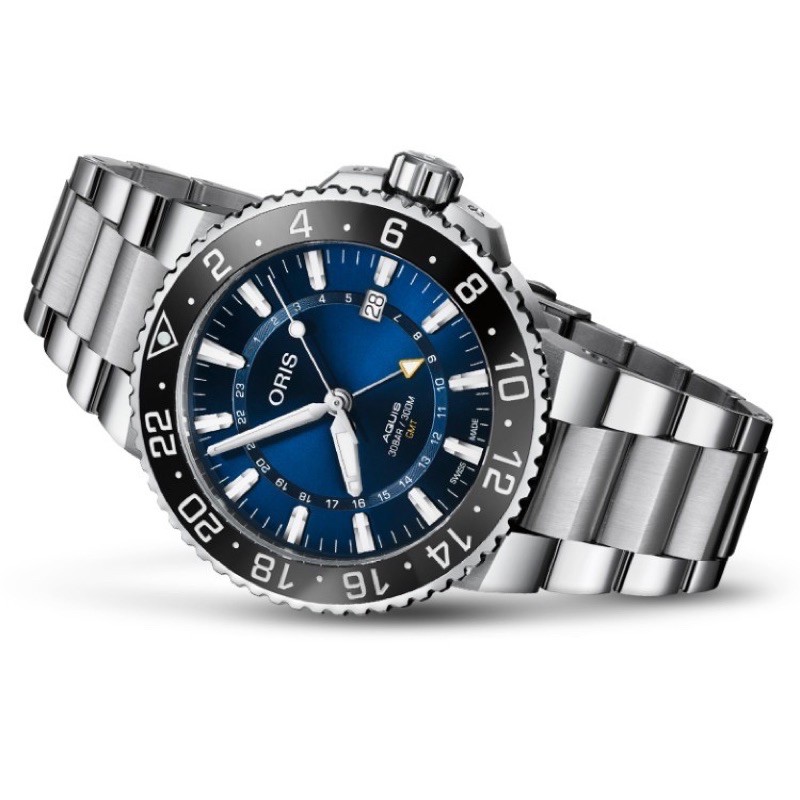 Oris 豪利時 Aquis GMT 雙時區潛水300米機械錶-藍x銀鋼0179877544135-0782405PEB