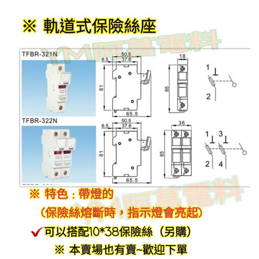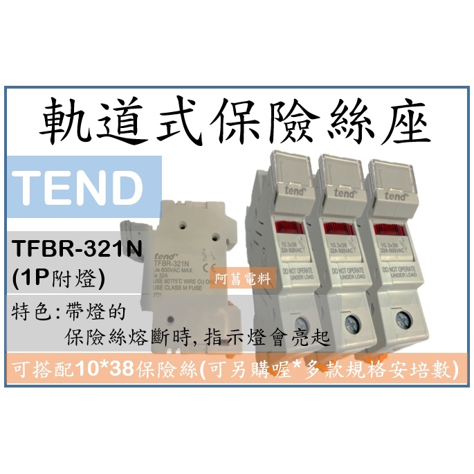 【附發票】TEND 軌道式保險絲座 TFBR-321N 1P / TFBR-322N 2P 帶燈型 適用保險絲10*38