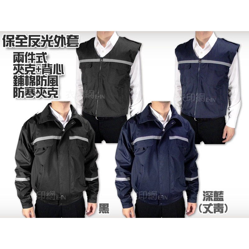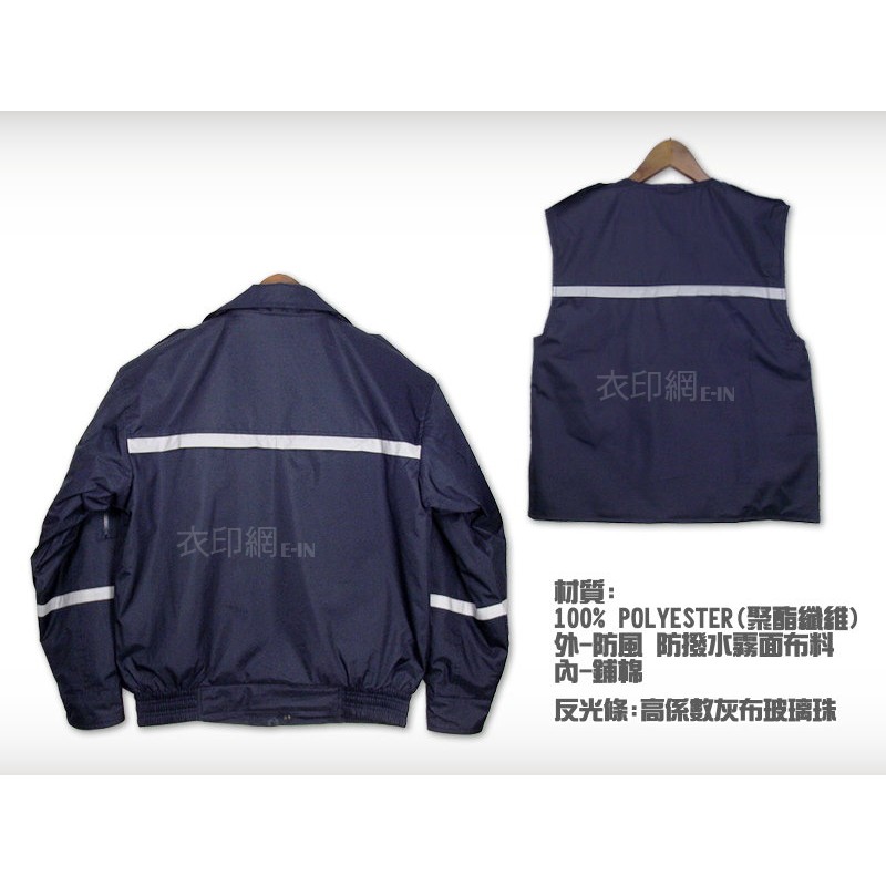 衣印網E-IN-深藍巡守外套保全外套騎車防寒夾克外套鋪棉外套反光保暖大尺碼工廠直營團體外套