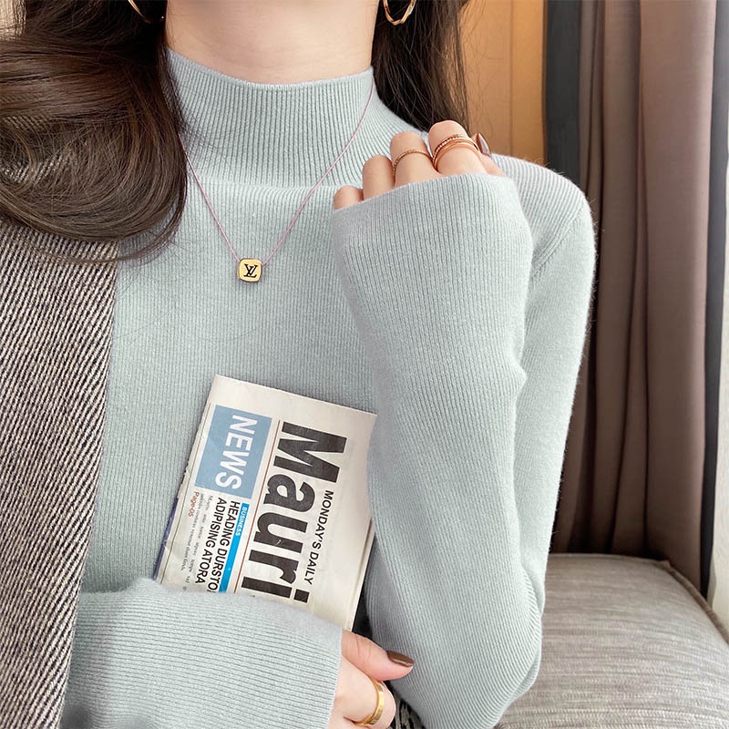 【買到戀愛】隔日到貨 軟糯感領口不變形 彈性親膚超顯瘦針織上衣 高領毛衣 打底衫 內搭 發熱衣 微高領【FB1917】