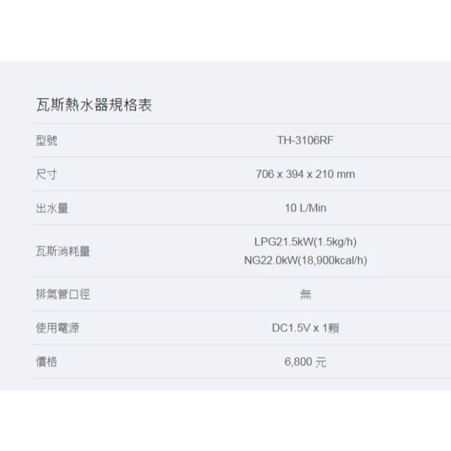 【莊頭北】 10L 屋外型熱水器 ( TH-3106RF )