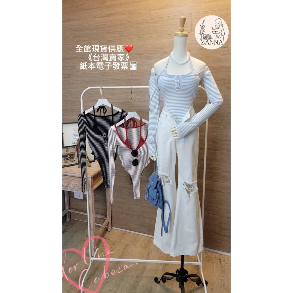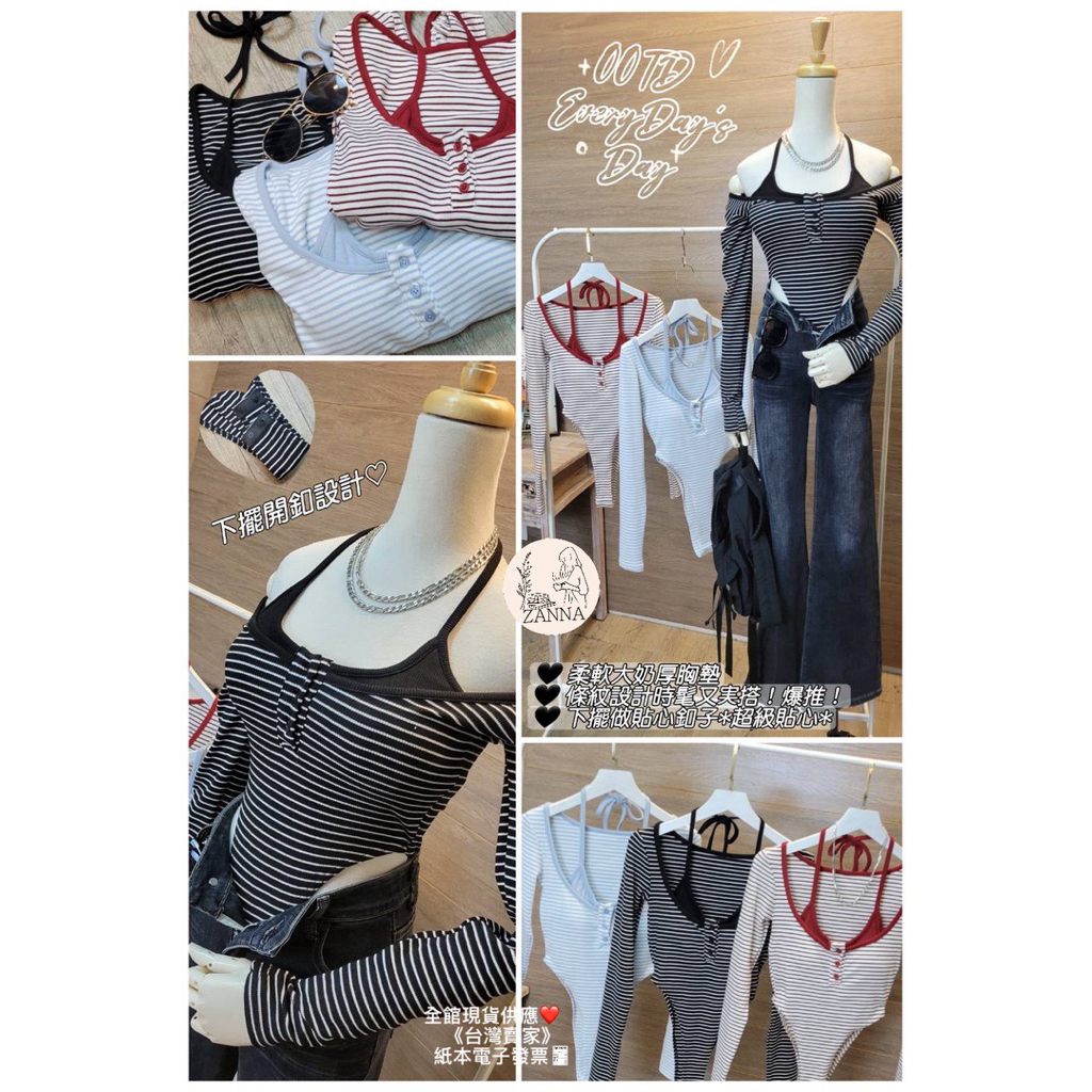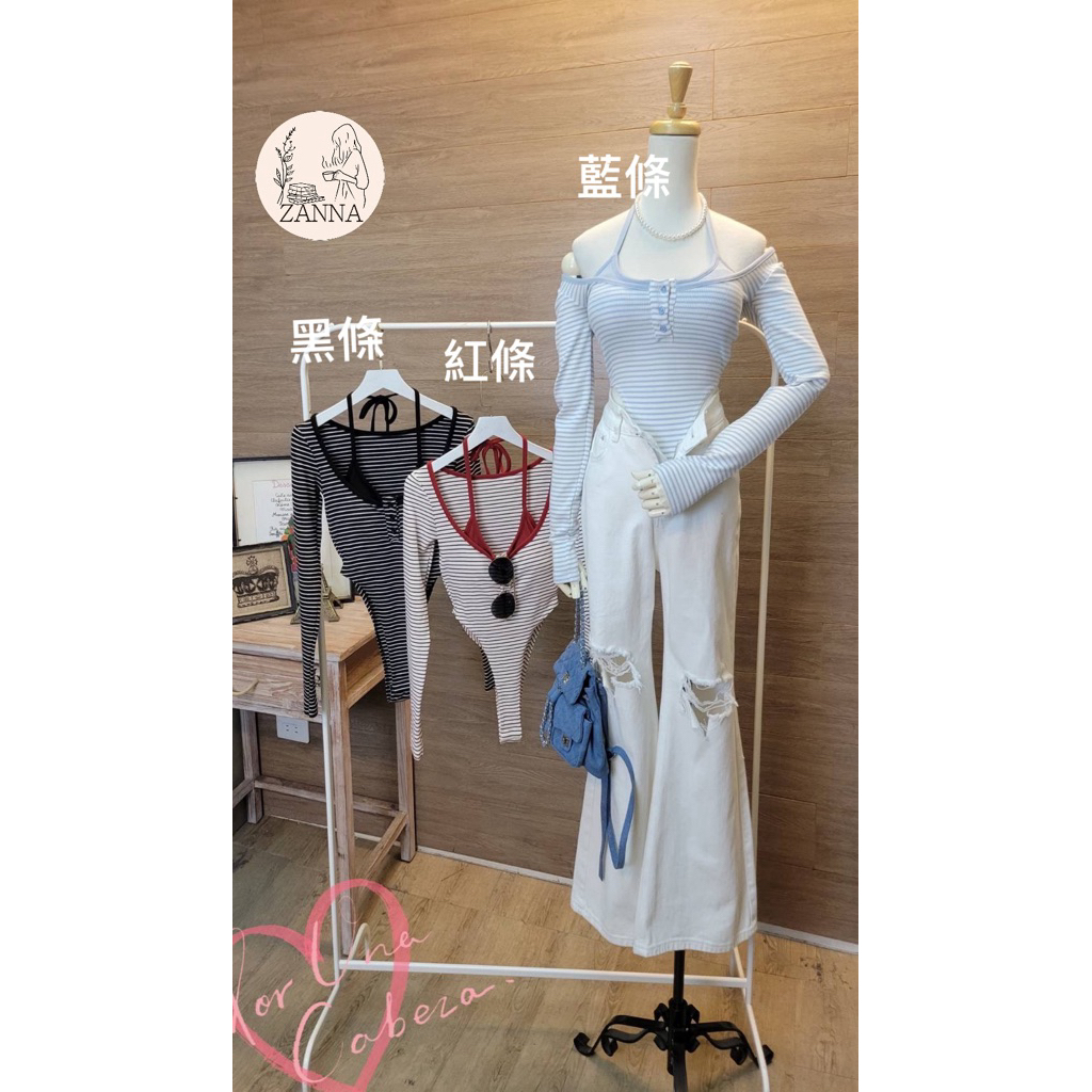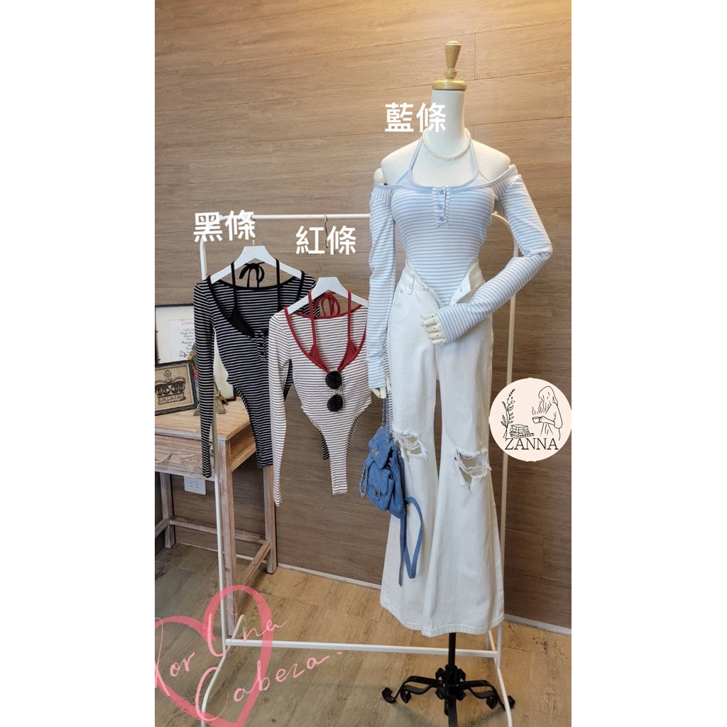 《zanna》 52520(M)A3-1韓系 俏皮條紋削肩連身衣 內有杯墊 條紋 條紋上衣連身衣 包屁衣上 其他上衣