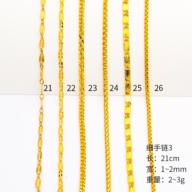 [沙金首飾] 嘴脣手鍊女士細手鍊肖邦仿真金鍍24K黃金手鍊女款細手鍊延長手鍊