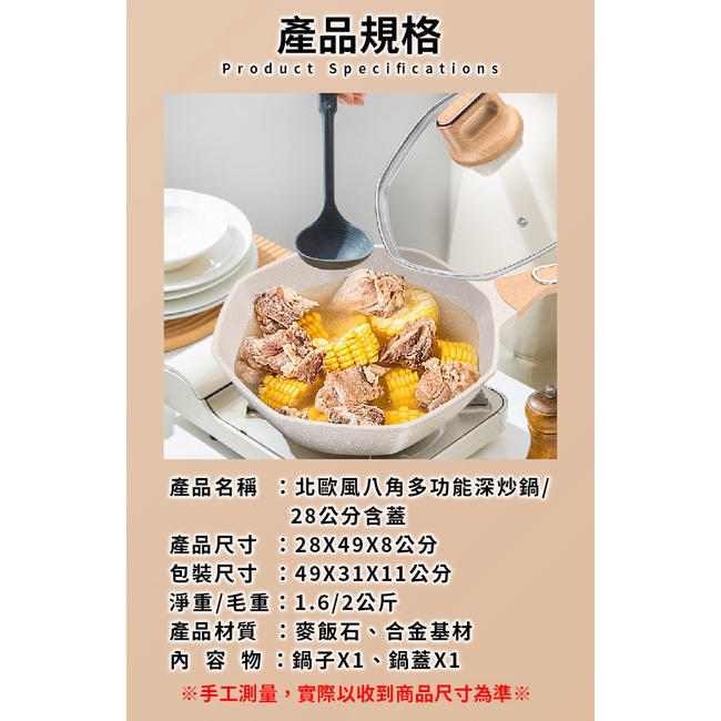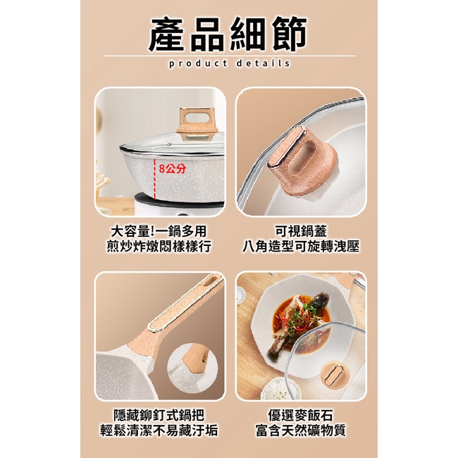 銀離子抗菌不沾八角多功能深炒鍋/28公分含蓋(K0171-30)