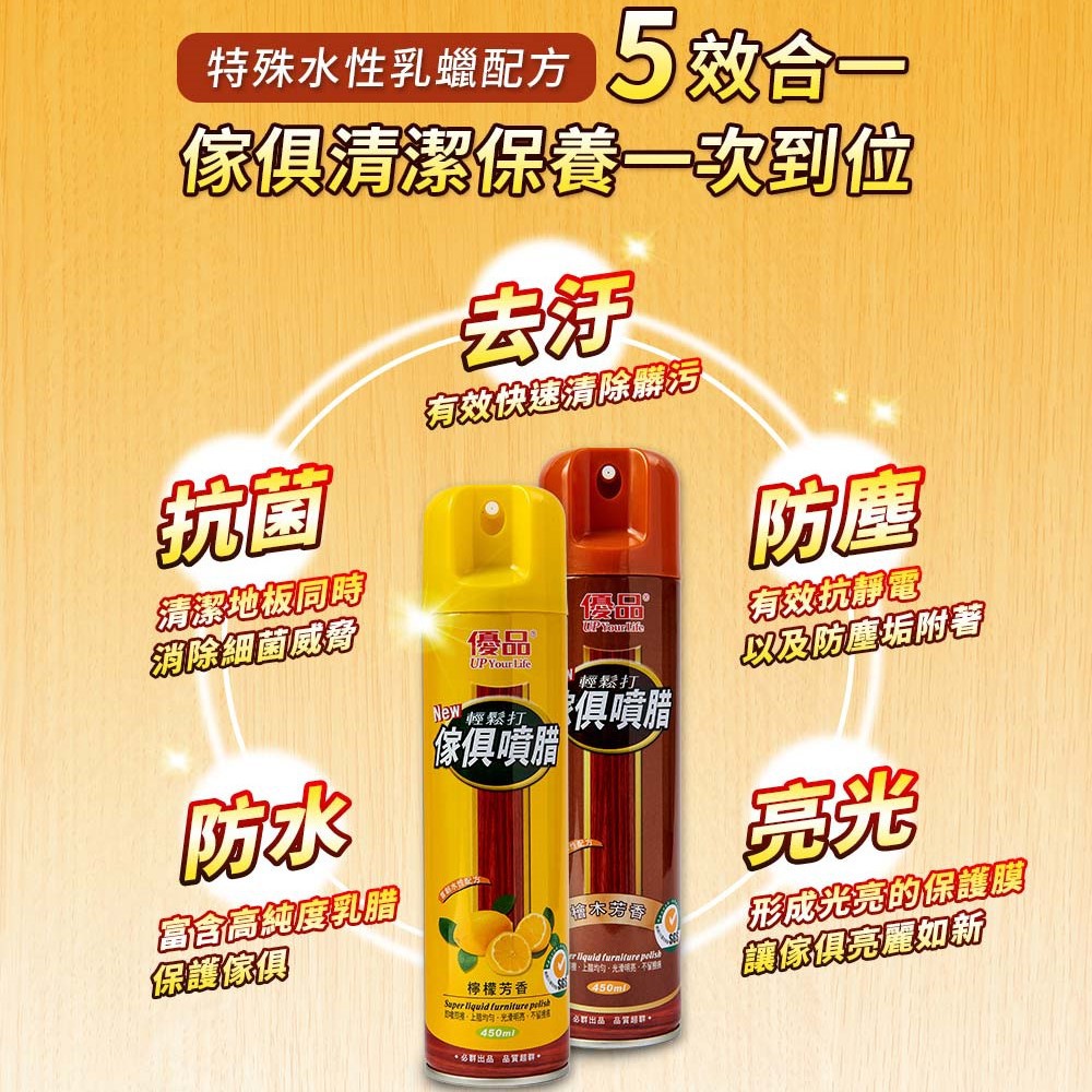 【MIT、現貨】傢俱蠟 傢俱噴蠟 傢俱臘 木質保養 傢俱保養 家具噴蠟 優品 傢俱噴腊 450ml-檜木/檸檬