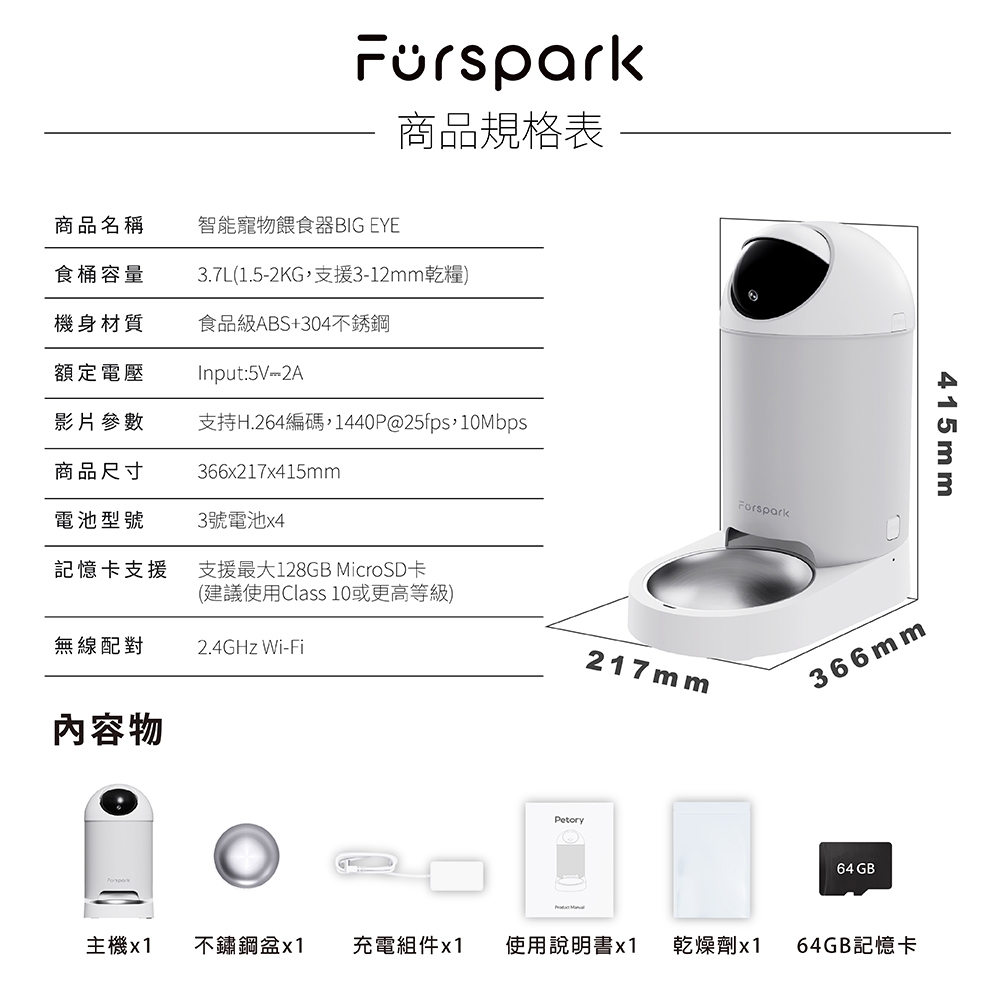 美國 Furspark 大眼睛 AI仿生智能寵物餵食器 48小時錄影回放 2K畫質 同步視訊 AI自動監控 隱私保護眼瞼