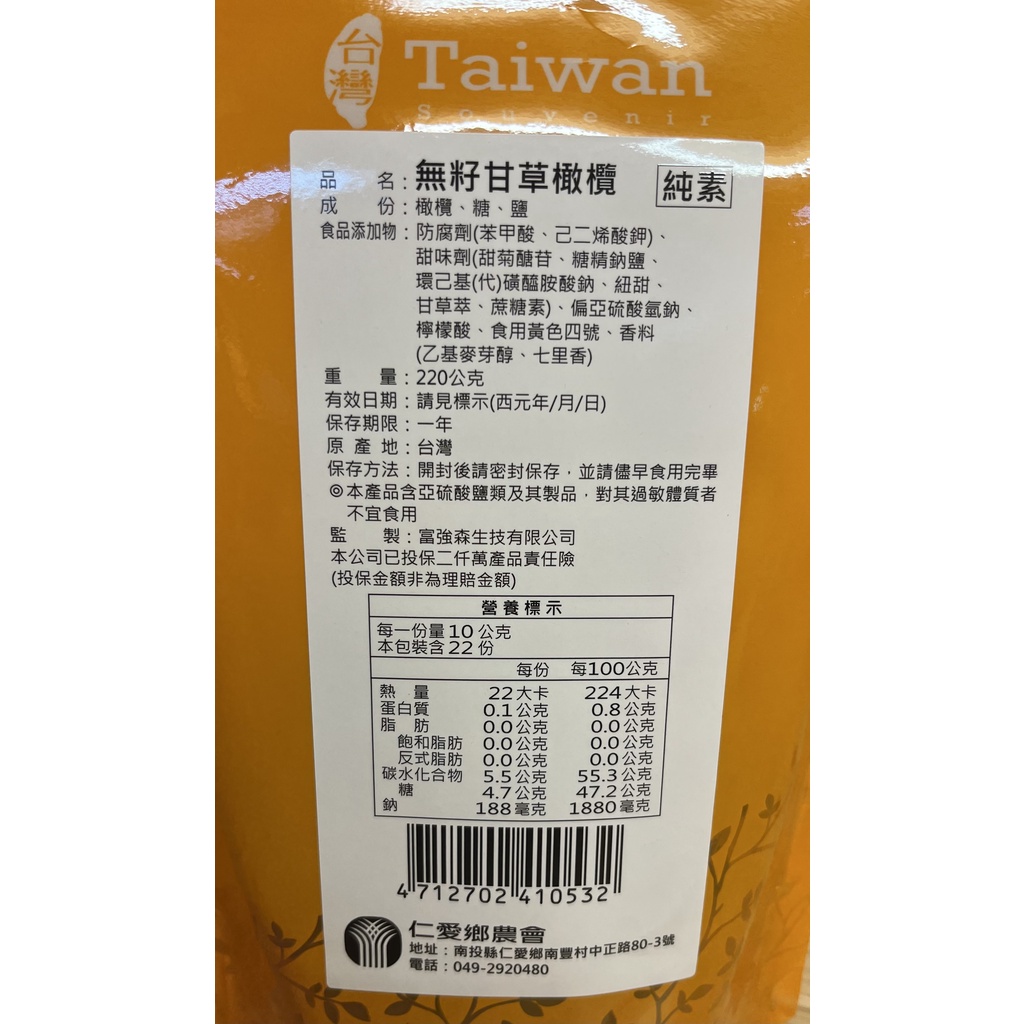 【仁愛鄉農會】無籽甘草橄欖 (220g)