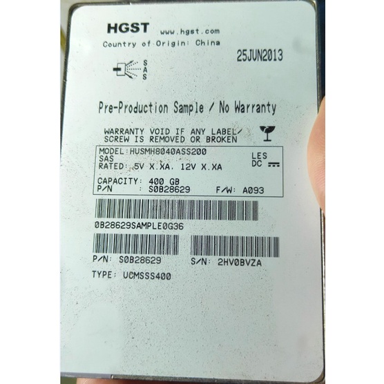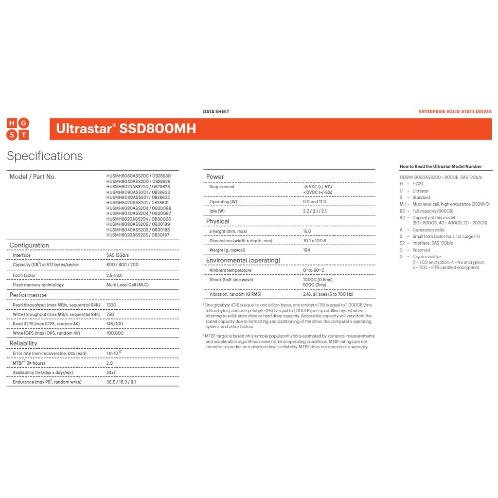 HGST HUSMH 400GB SAS12 SSD DWPD=25(eMLC)