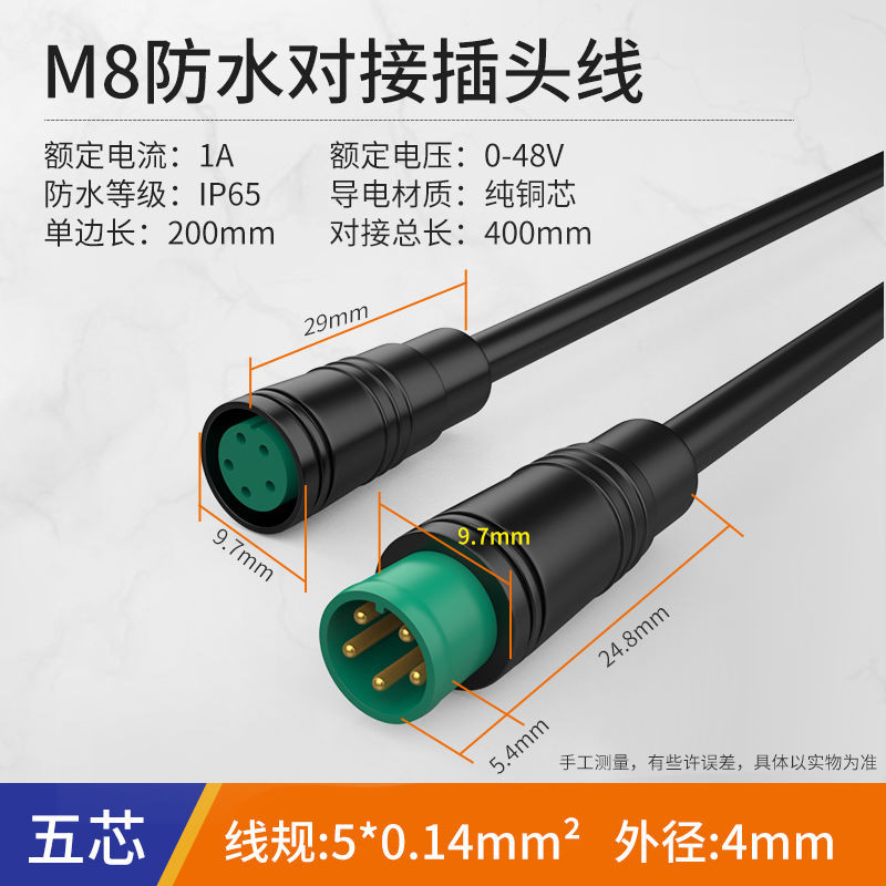 M8防水連接器 航空插頭 2 3 4 5 6芯感測器 公母頭 對接 帶線連接器