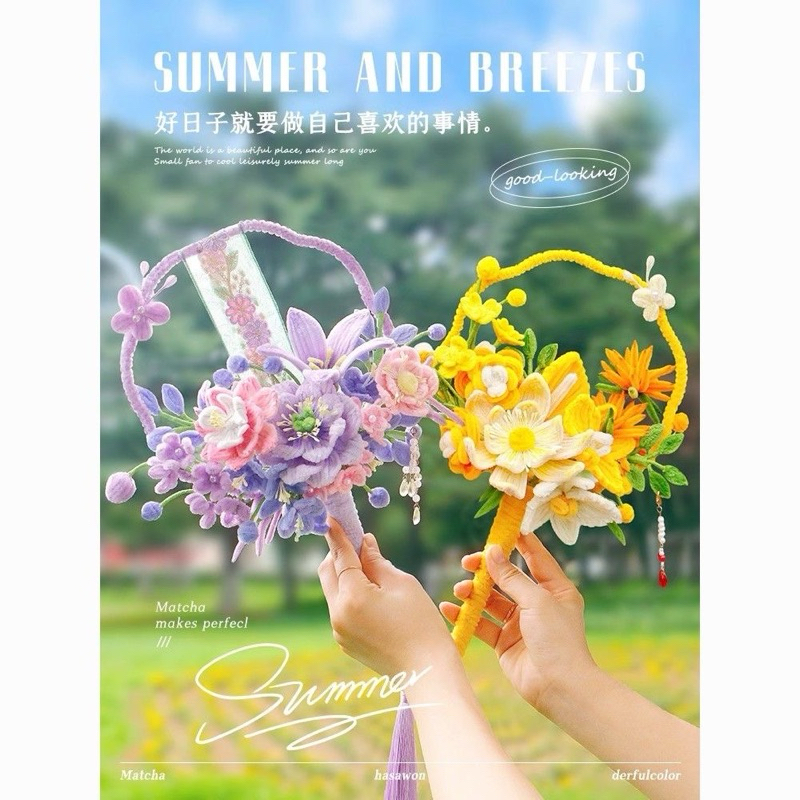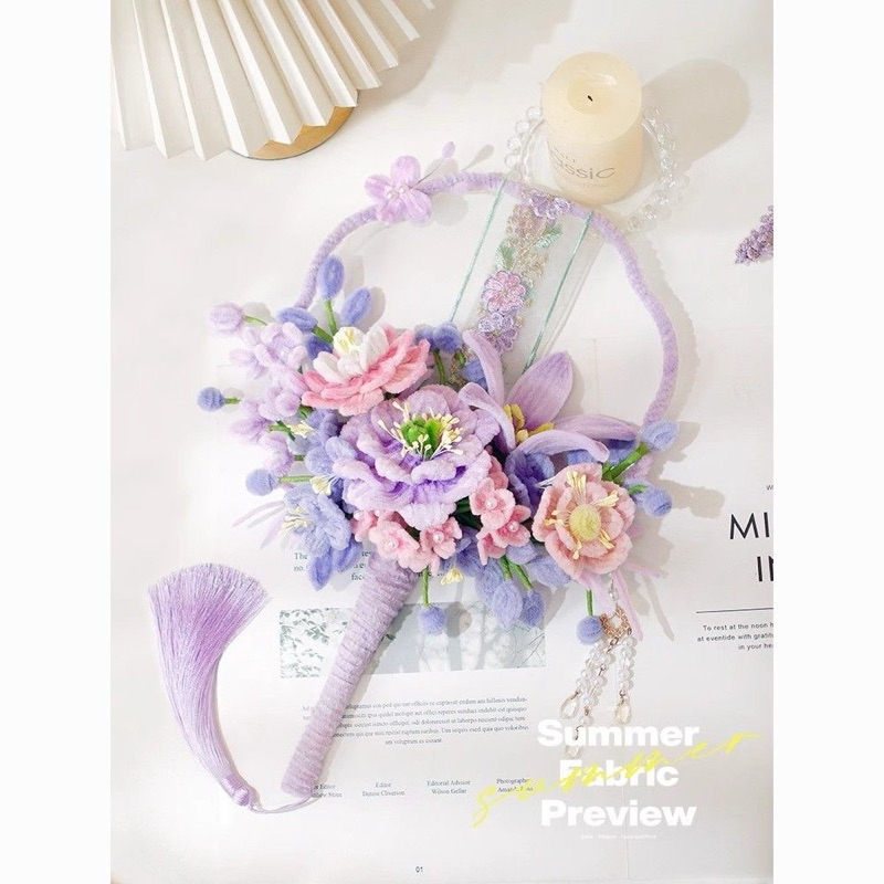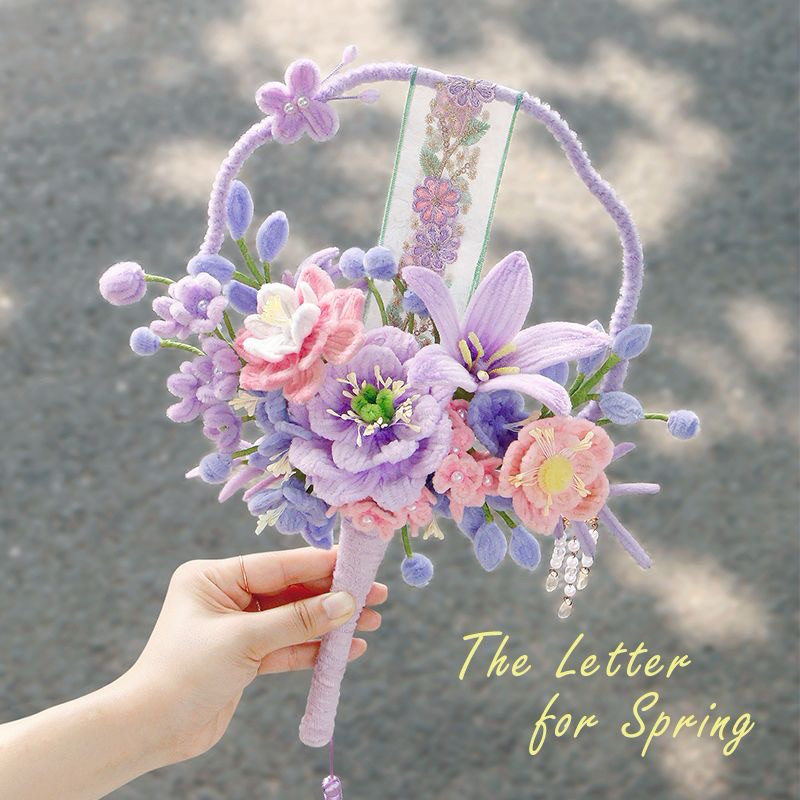 現貨紫色-扭扭棒團扇-花束手工 diy材料包-扇子 送家人朋友創意禮物