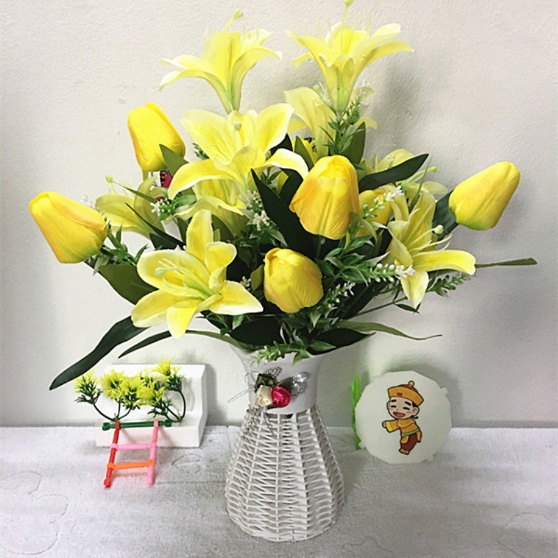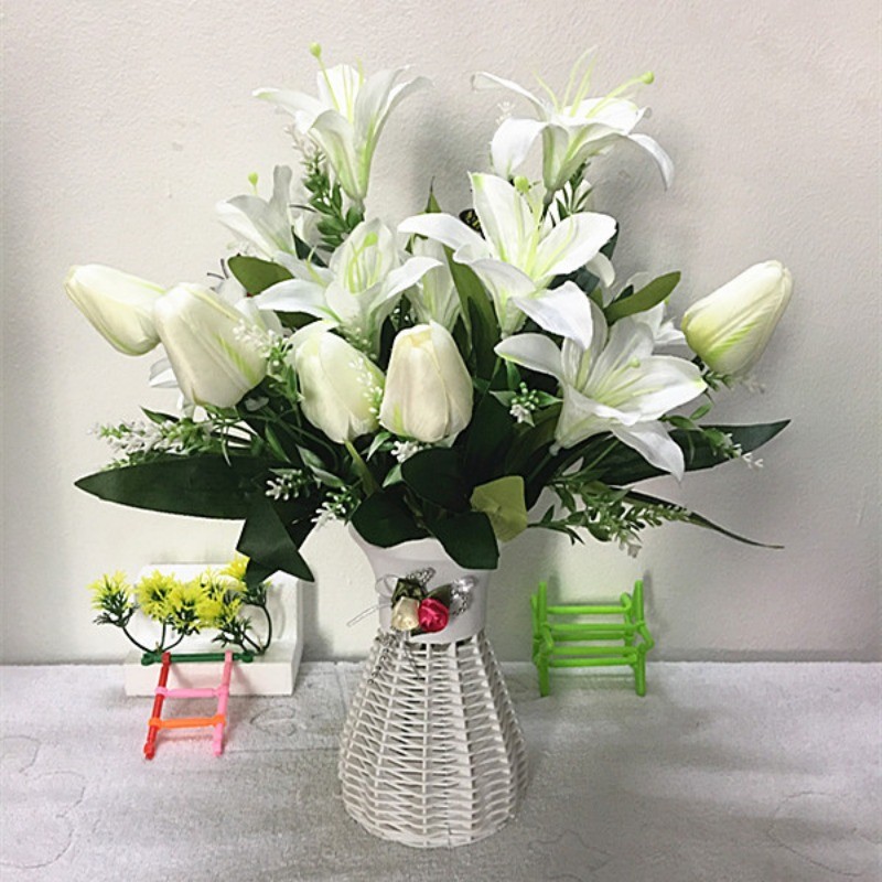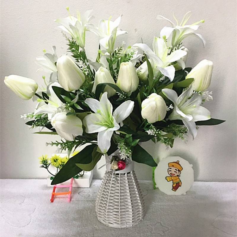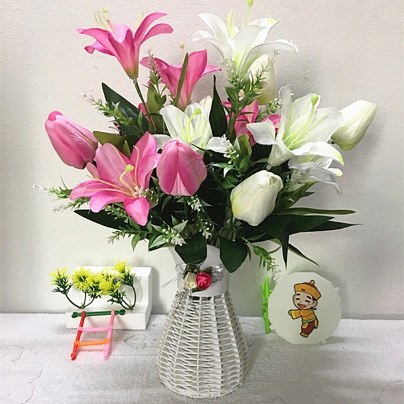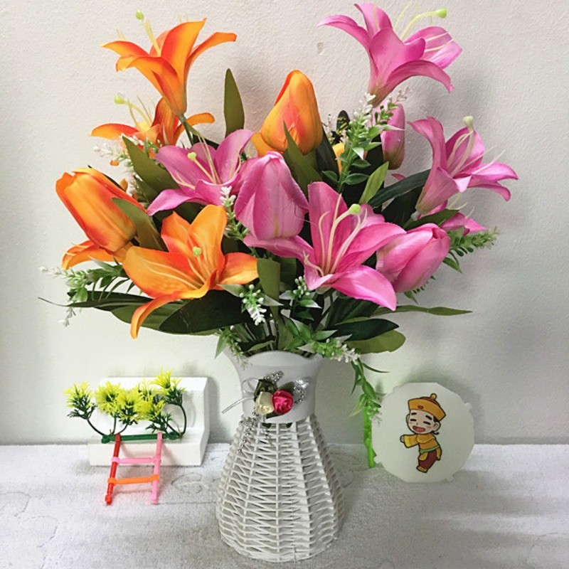 創意百合鬱金香仿真花假花卉人造花束盆栽素材家居家飾生活擺設小擺飾永生花藝綠植物拍照裝飾品擺件道具桌面塑膠花瓶不凋花器佈置