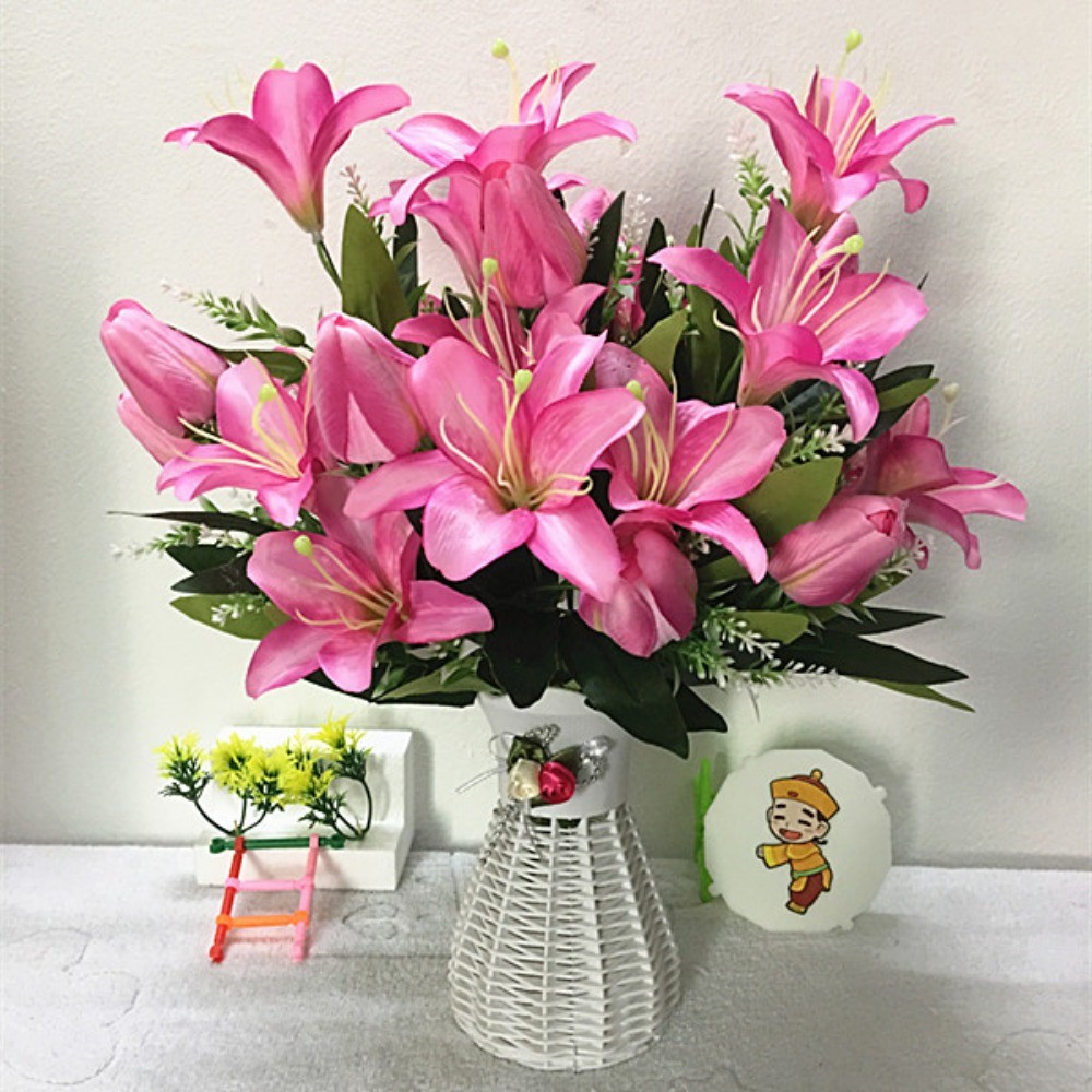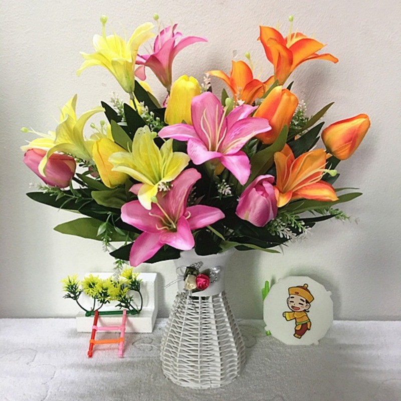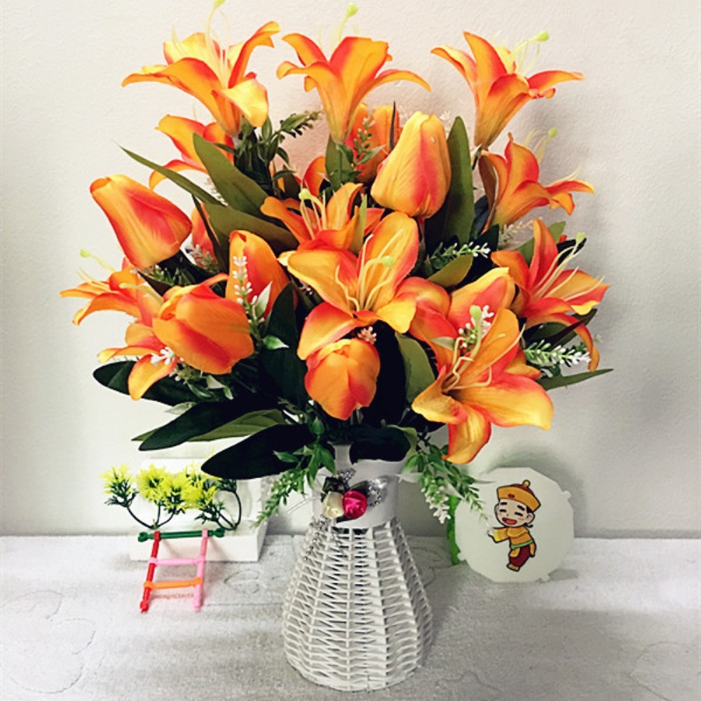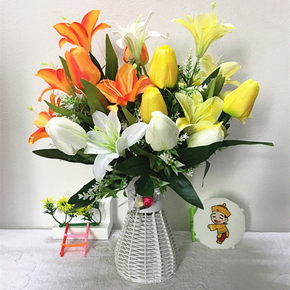 創意百合鬱金香仿真花假花卉人造花束盆栽素材家居家飾生活擺設小擺飾永生花藝綠植物拍照裝飾品擺件道具桌面塑膠花瓶不凋花器佈置
