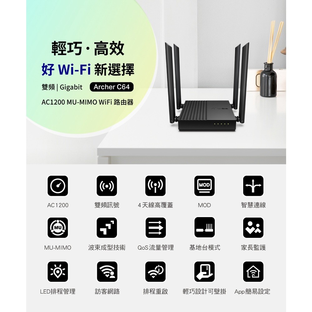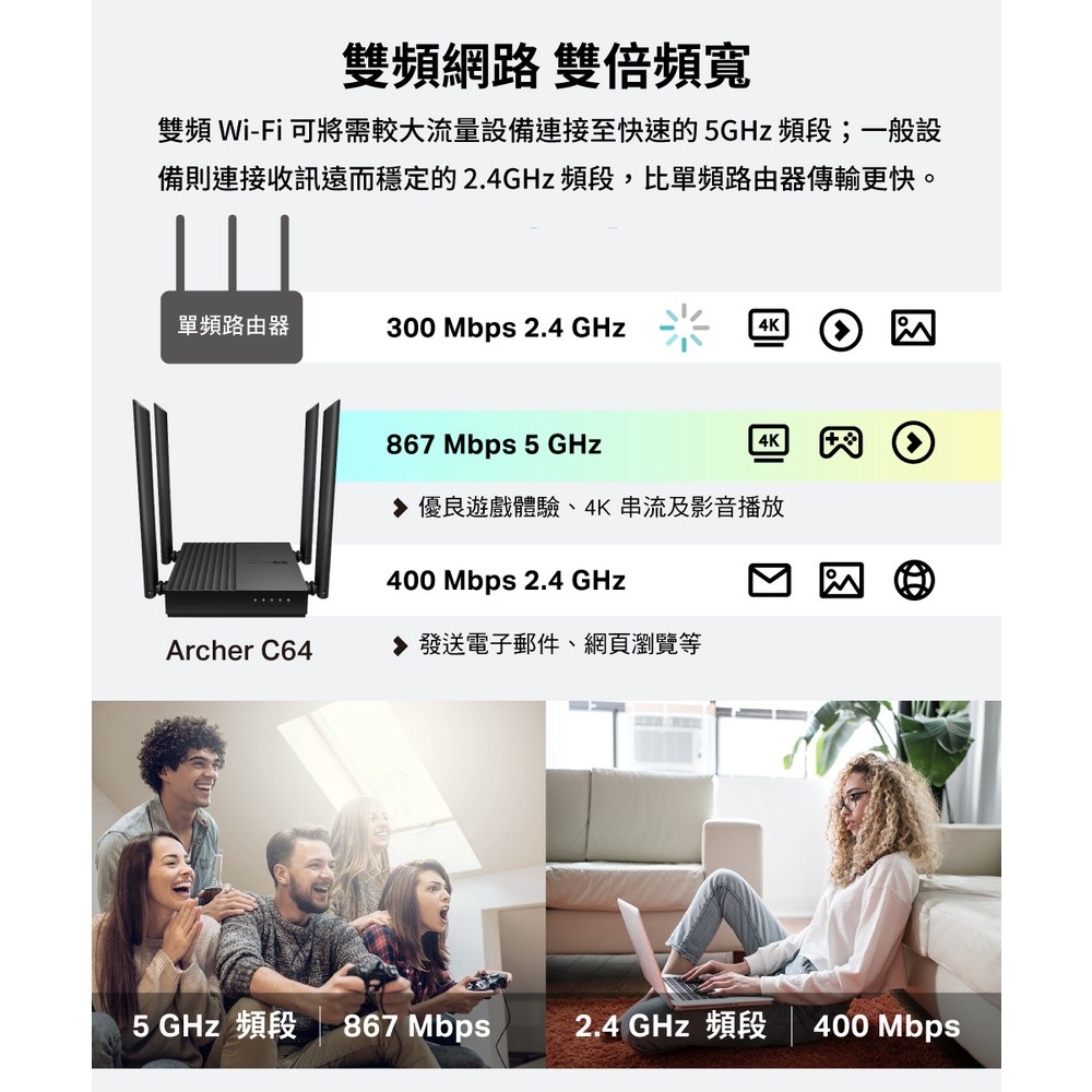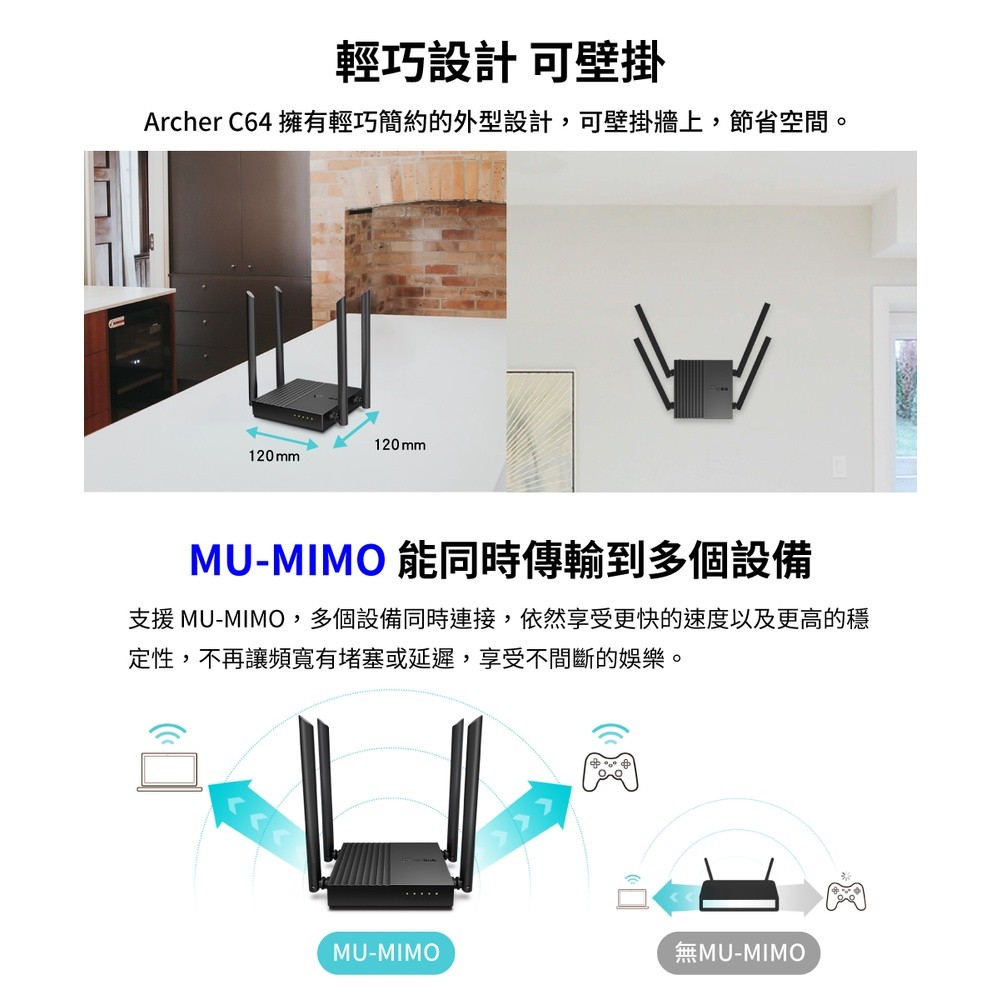 TP-Link Archer C64 AC1200 雙頻 WiFi分享器 MU-MIMO Gigabit 路由器 原價屋