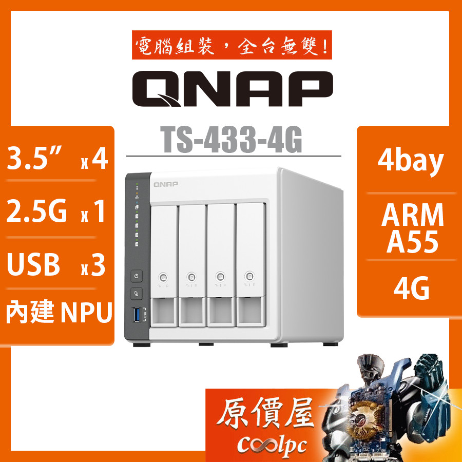 QNAP威聯通 TS-433-4G【4Bay】四核心/NAS/網路儲存/伺服器/原價屋