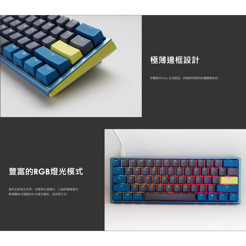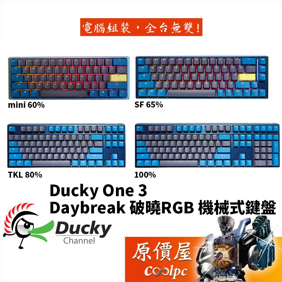 Ducky創傑 One3 機械式鍵盤/軸體熱插拔/中文/PBT/二色/深藍帽灰蓋/DayBreak/原價屋