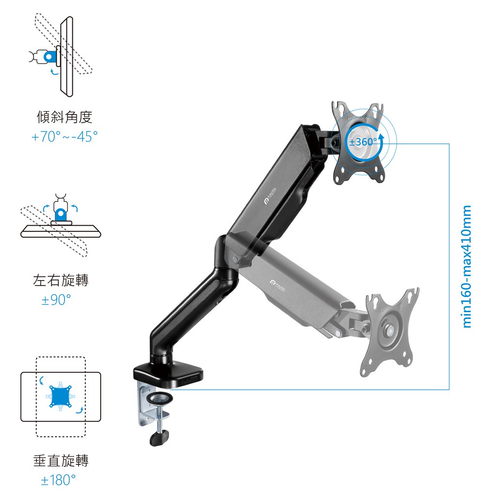 Raymii瑞米 LS10 氣壓式 螢幕支架 螢幕架 螢幕伸縮懸掛支架/原價屋