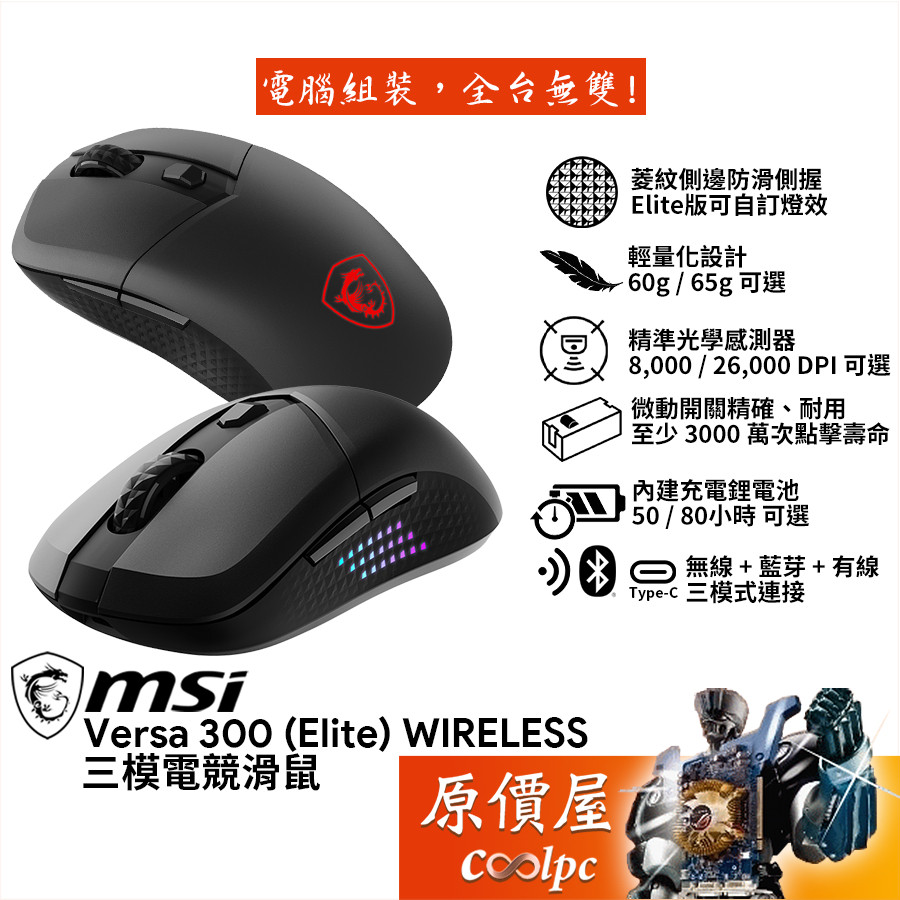 MSI微星 Versa 300 ﹝Elite﹞Wireless 三模無線電競滑鼠/輕量化設計/原價屋