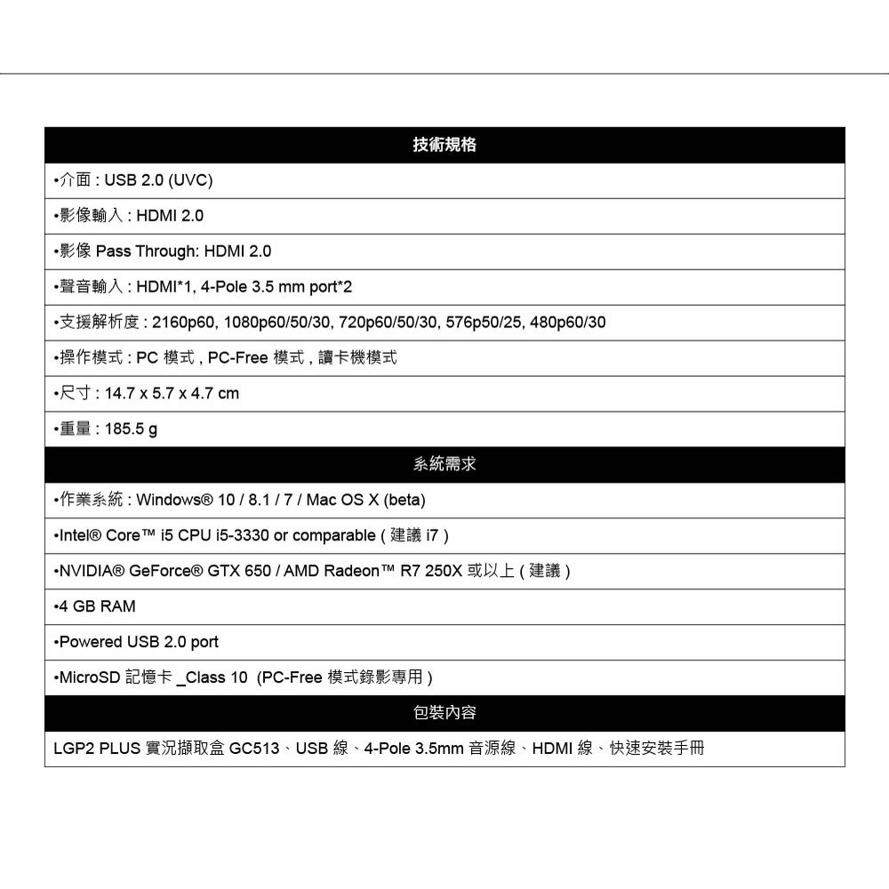 AVerMedia圓剛 GC513 LGP2 PLUS 4K/UVC/免驅動/4K支援/實況/擷取盒/原價屋