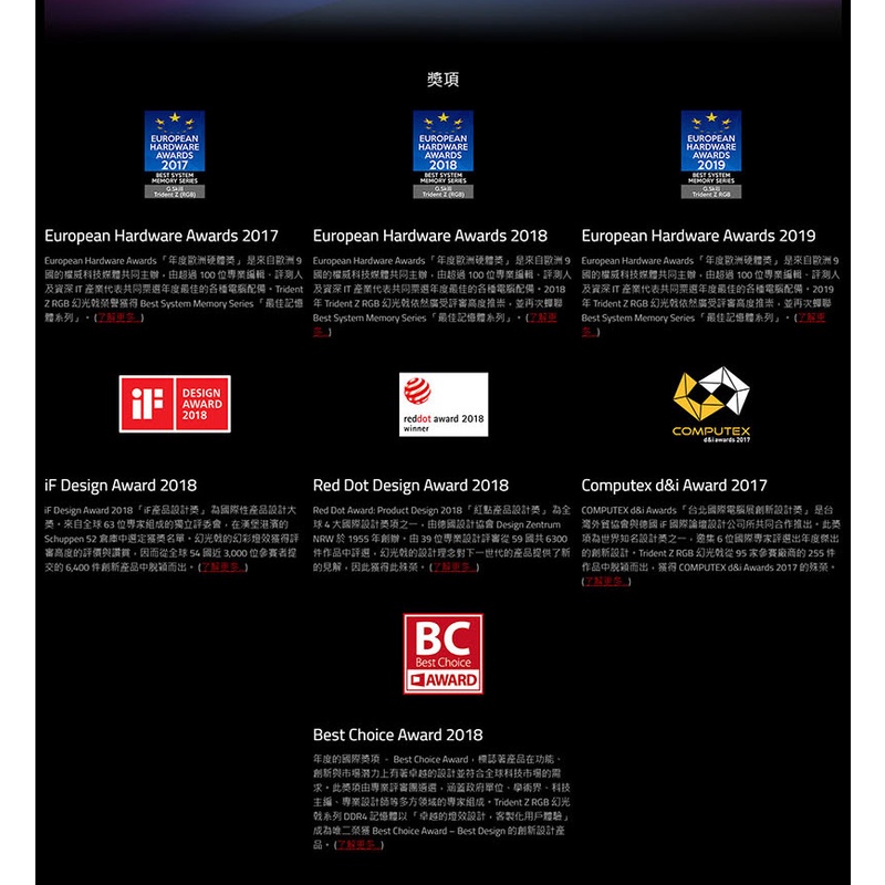 G.SKILL芝奇 幻光戟 16GBx2 DDR4-3200 F4-3200C16D-32GTZR RAM記憶體/原價屋