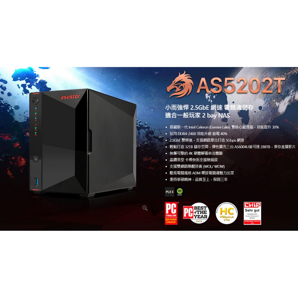 Asustor華芸 AS5202T【2Bay】雙核心/2GB/2.5GbE/NAS/網路儲存/原價屋
