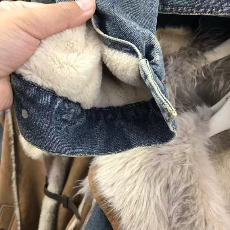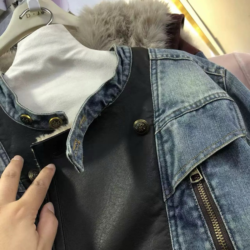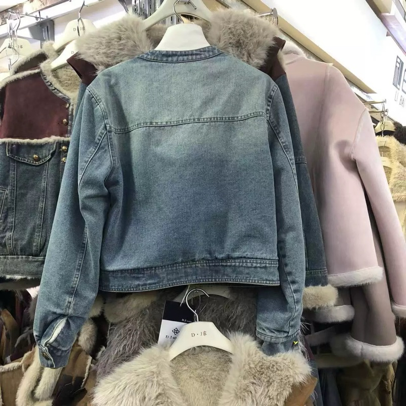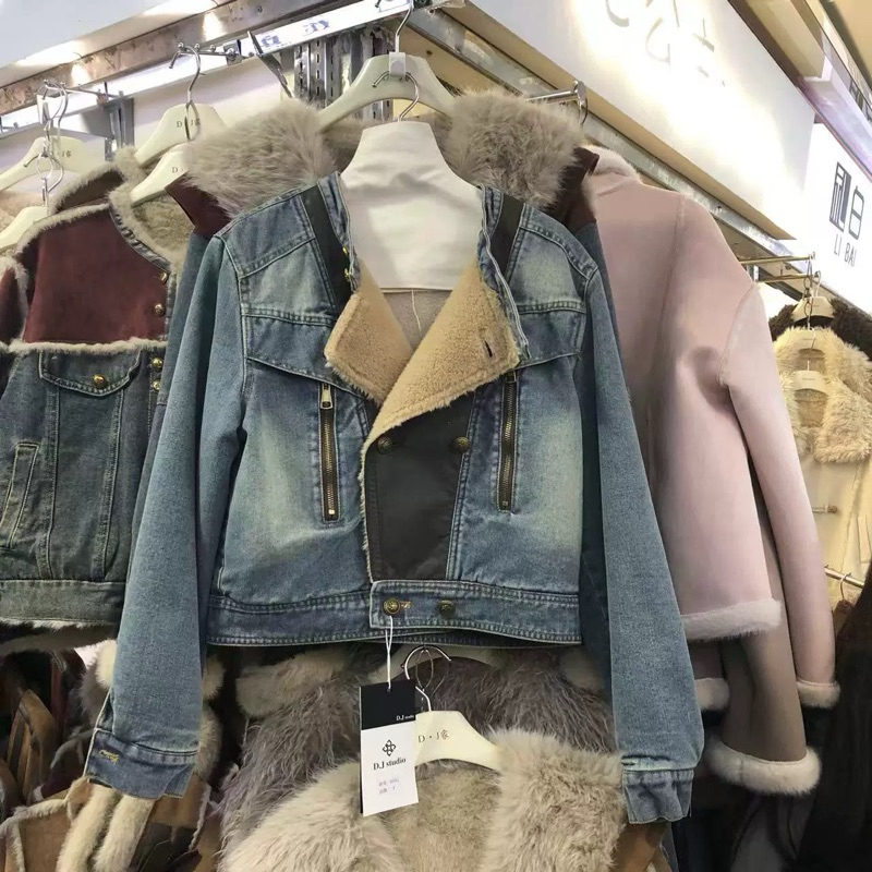 「2026 日韓新款NEW 2026女裝年冬季新款皮毛一體百搭寬鬆短款牛仔外套」