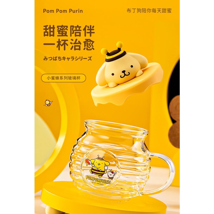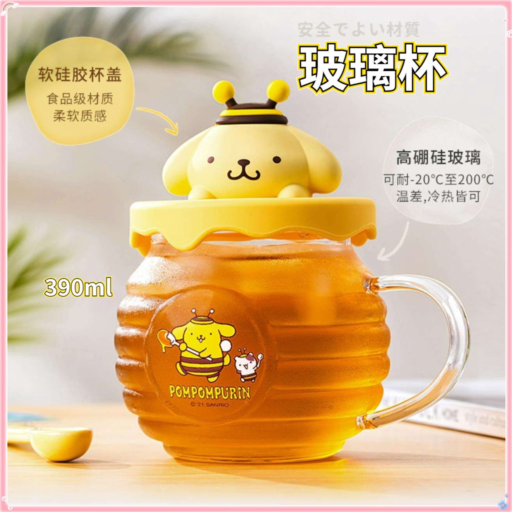 正版 三麗鷗Hello Kitty布丁狗玻璃杯 蜂罐造型果汁杯 奶茶杯 創意可愛耐熱牛奶杯 水杯
