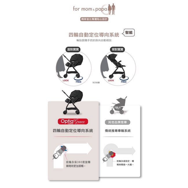 【Aprica 愛普力卡】Optia Cushion Grace豪華型雙向自動推車|卡多摩