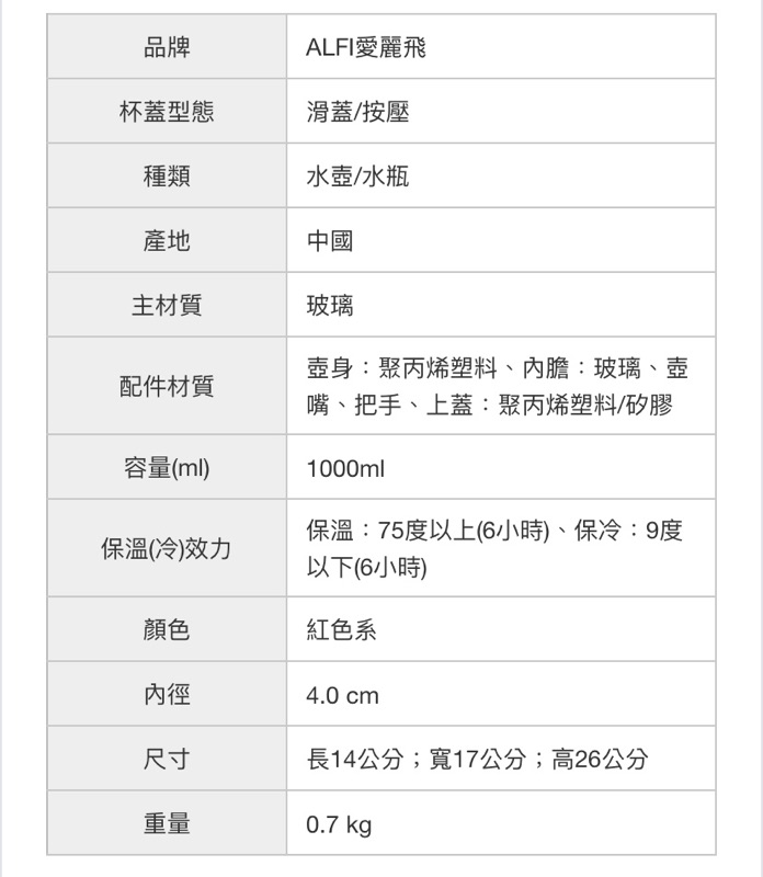膳魔師 代理 alfi 愛麗飛 (ECO-100)玻璃內膽真空保溫壺1000ML