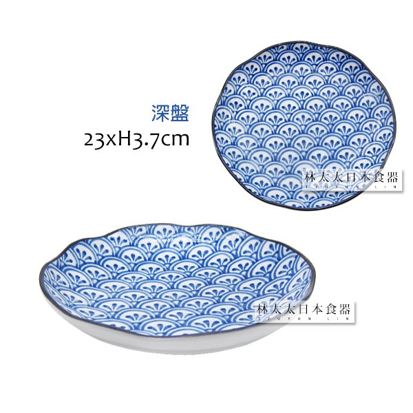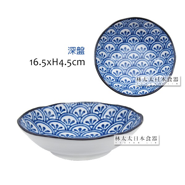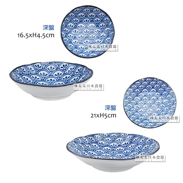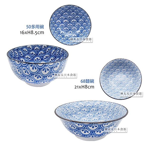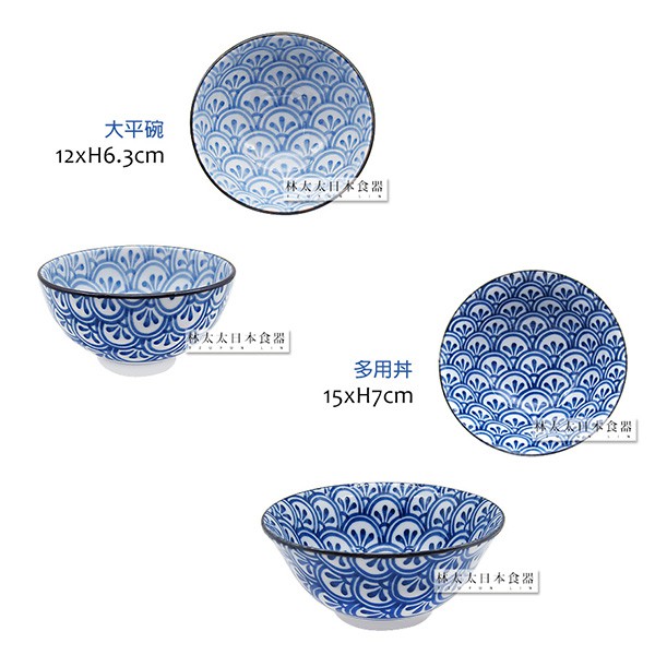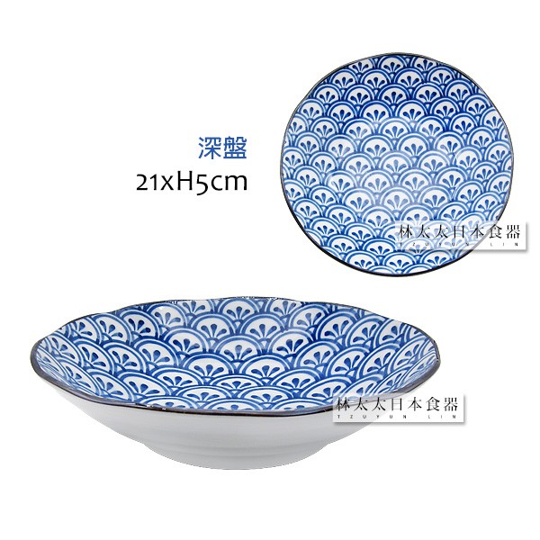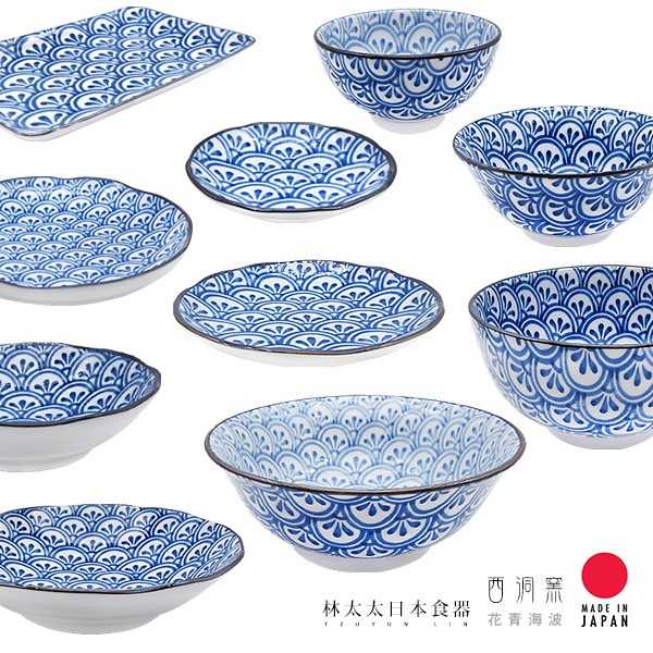 日本製 傳統日式花紋 西洞窯 花青海波 大平碗 麵碗 多用碗 多用井 圓盤 深盤 燒物盤 飯碗 碗 盤 拉麵碗 湯碗長盤