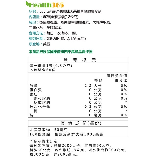 ﹝小資屋﹞Lovita愛維他 無味大蒜精素食膠囊5000mg(60顆/瓶)