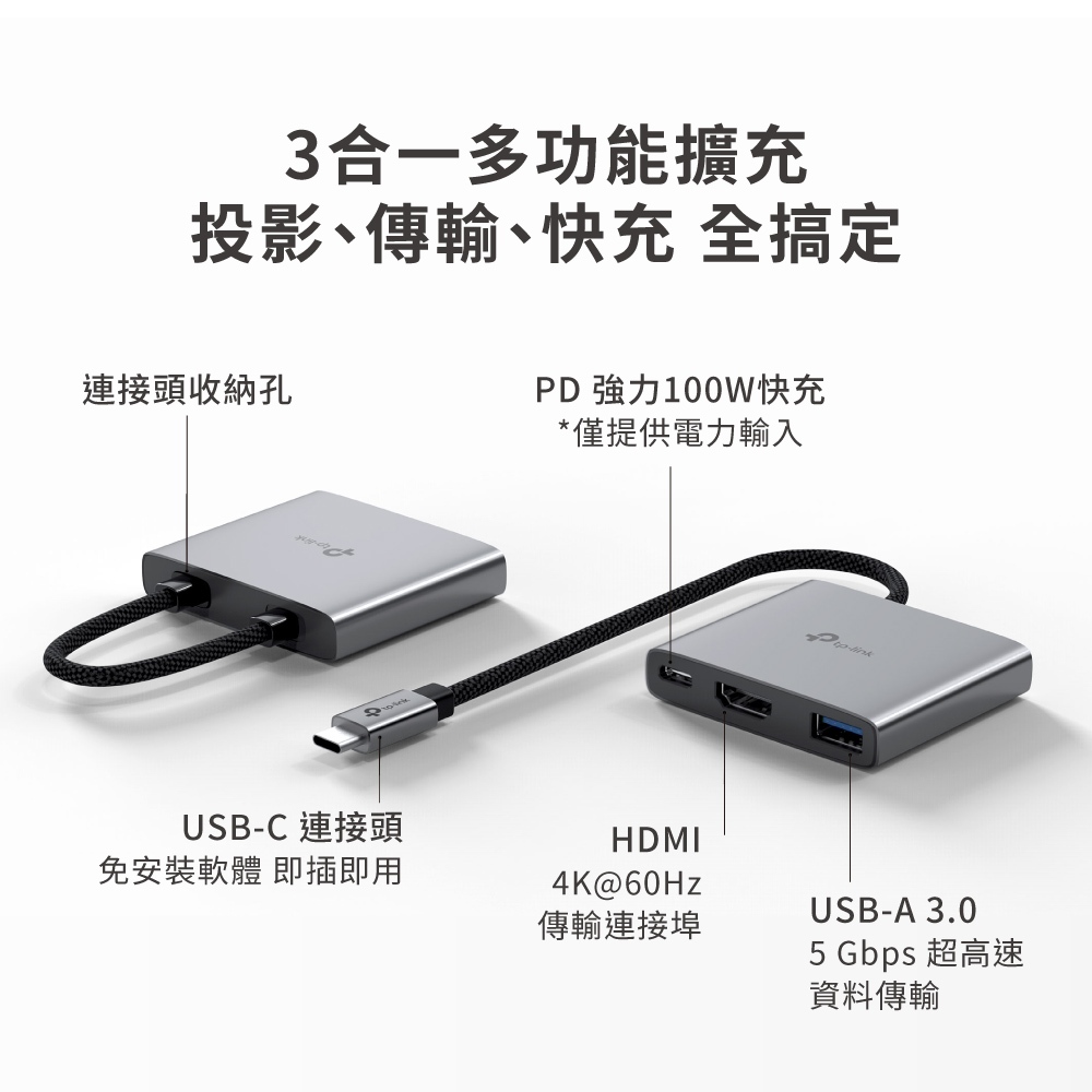 TP-Link 多功能HUB集線器 Type-C 集線器 HUB 轉接器 多埠USB-C 隨插即用 編織線 支援iOS