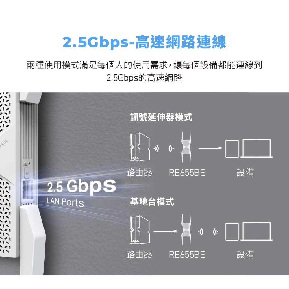 全台首款 TP-Link RE655BE BE11000 Wi-Fi7 三頻無線訊號 延伸器 wifi 放大器 訊號擴大