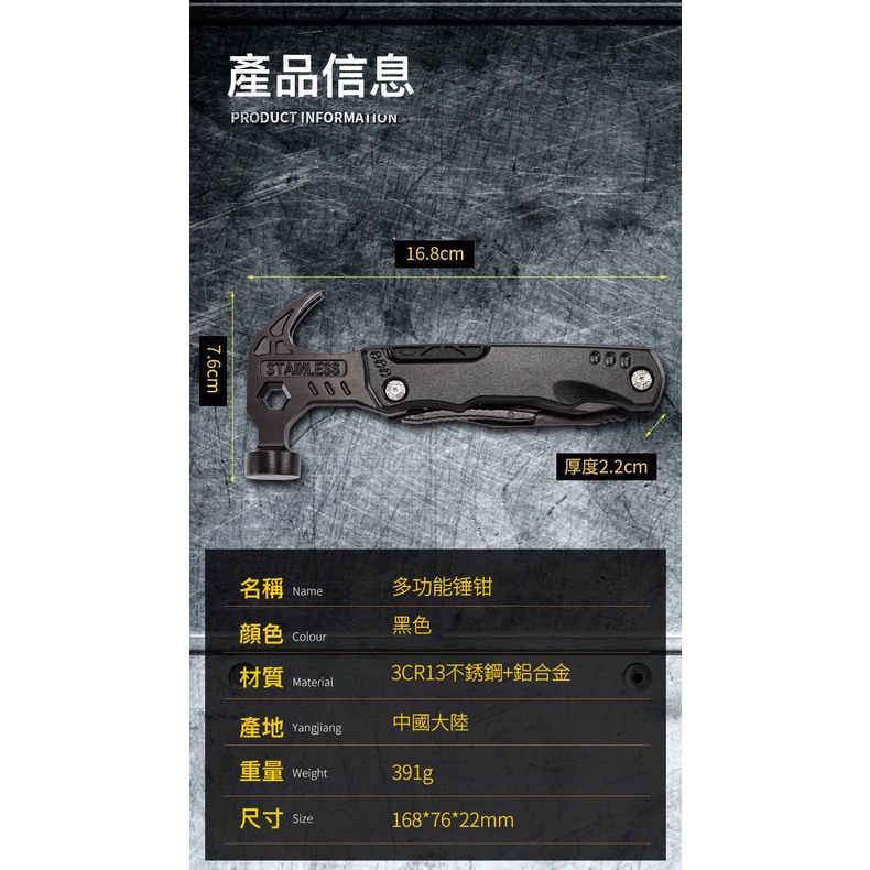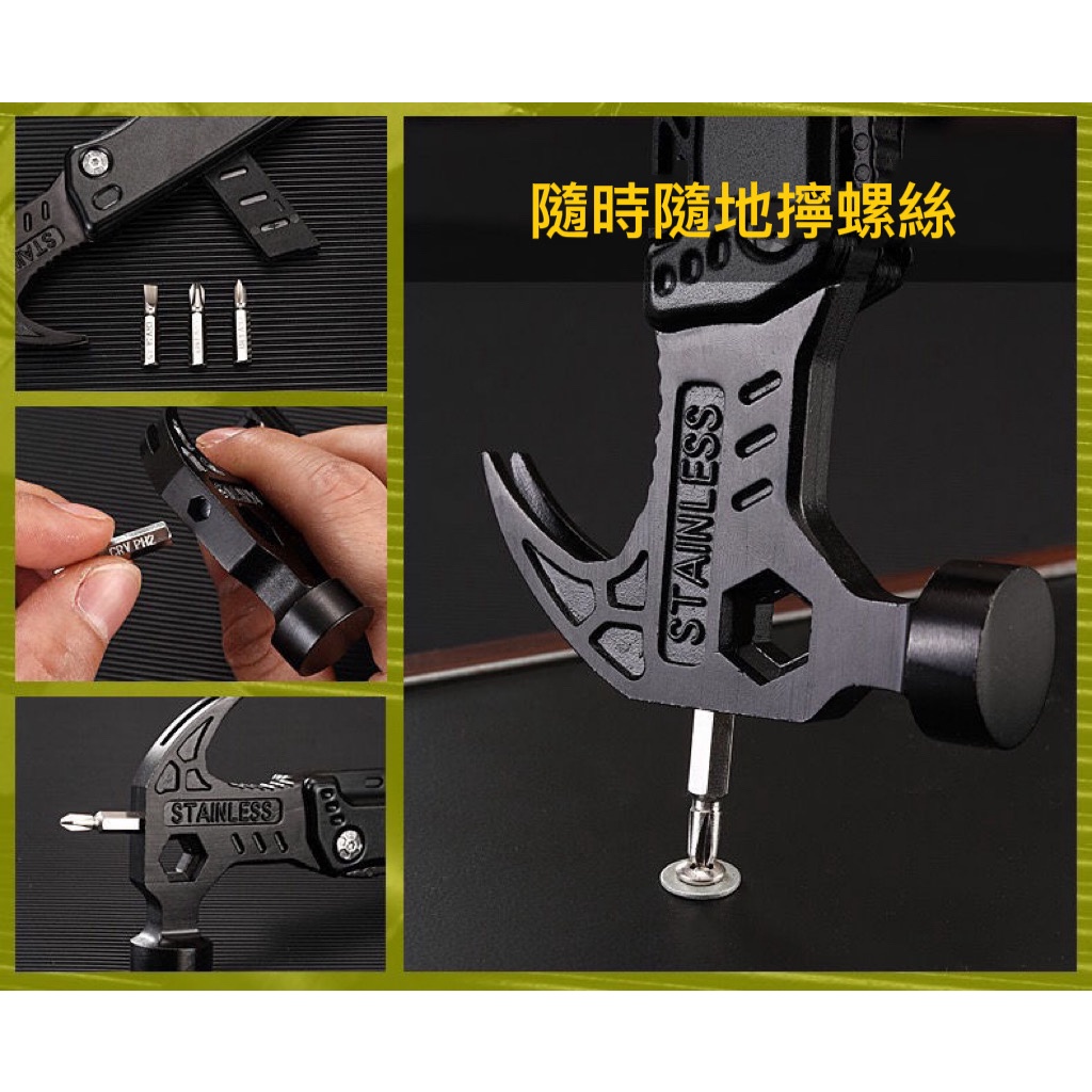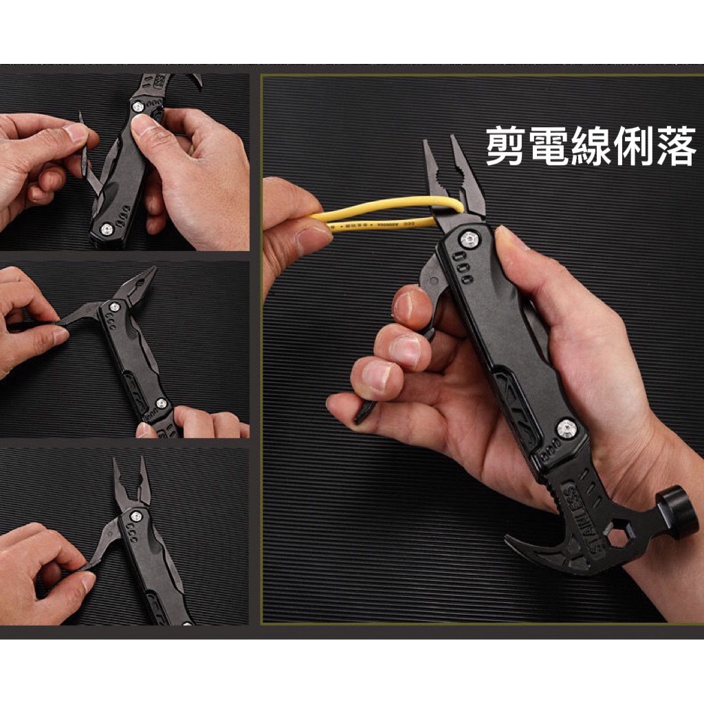 星攀戶外✩登山露營多功能錘+鉗子+羊角錘14合一多功能鎚子+瑞士刀設計/車用安全折疊錘.可破窗逃生錘.露營野營求生小刀
