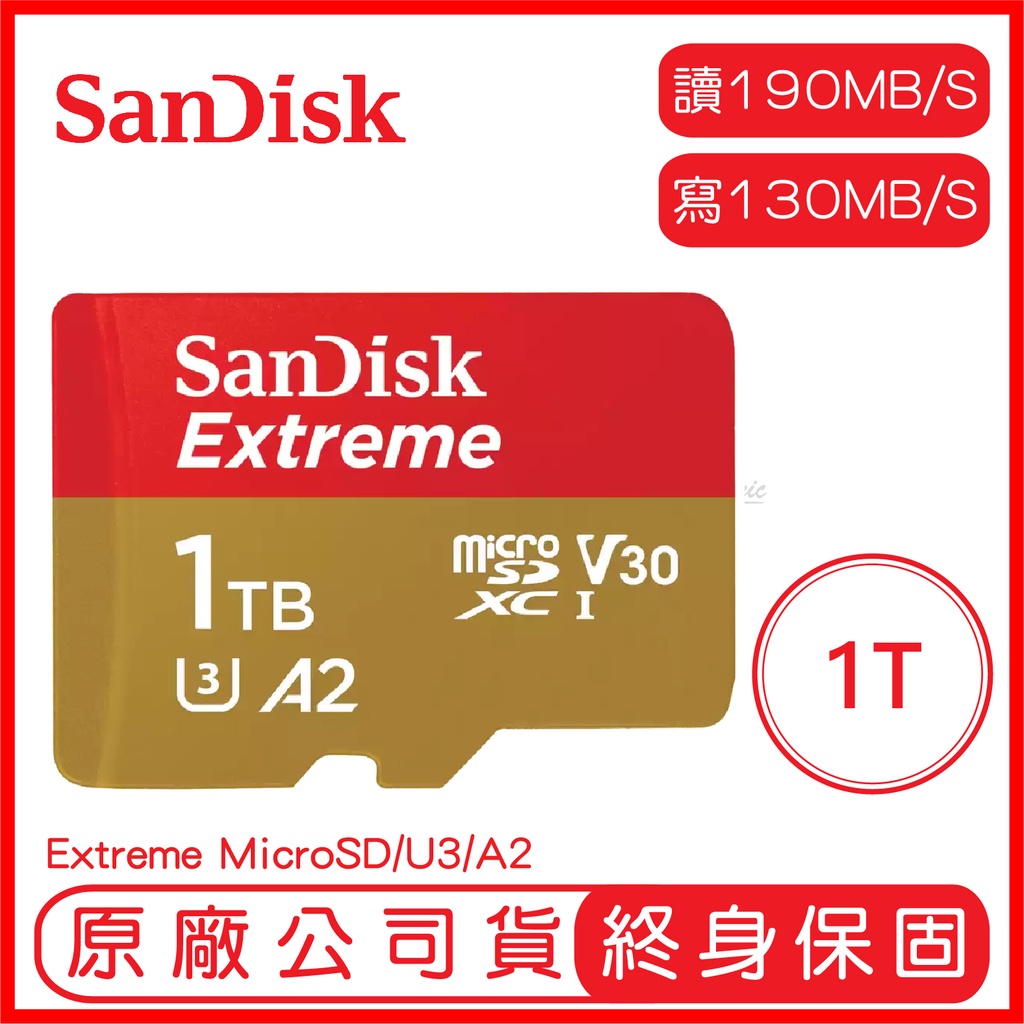SANDISK 1T EXTREME MicroSD UHS-I A2 U3 記憶卡 1TB 讀190 寫130 小卡