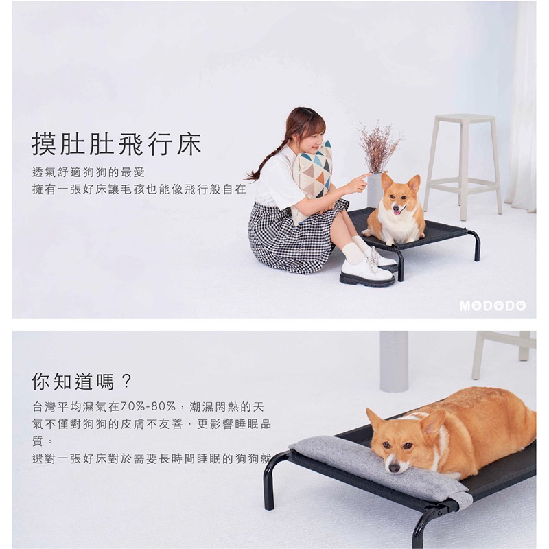 MODODO 摸肚肚 寵物飛行床-經典黑S號(寵物床/行軍床)