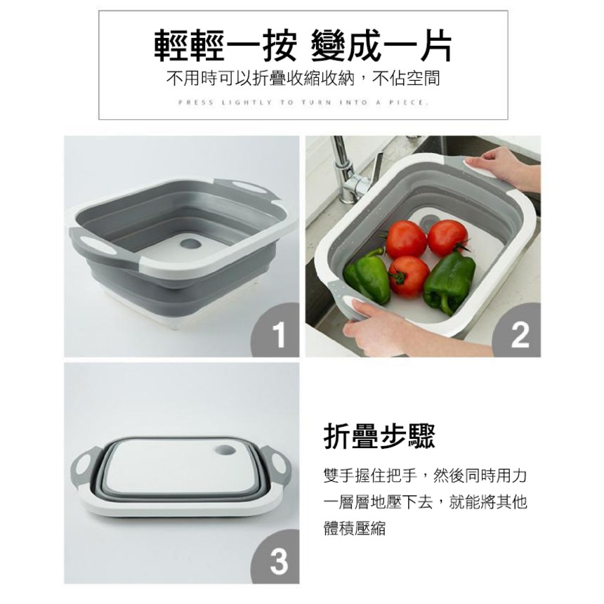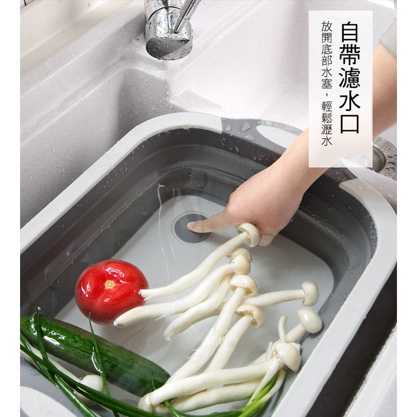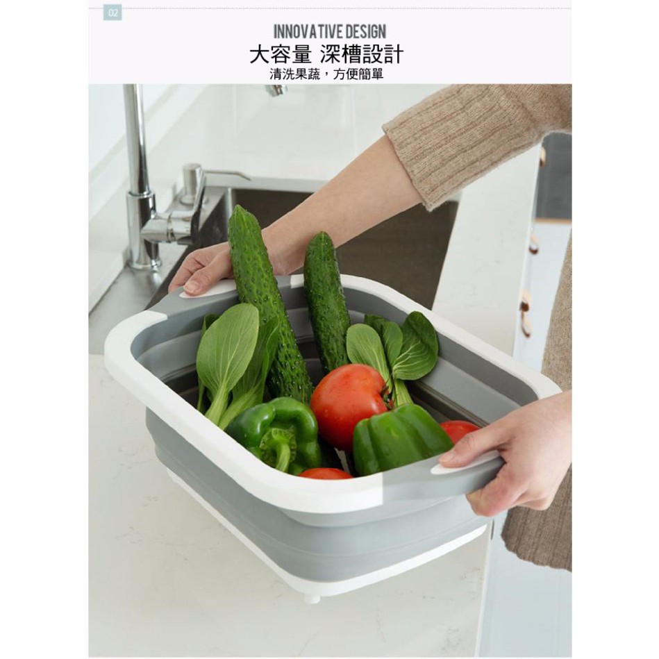 【隔日到貨免運費!大容量可折疊 輕鬆瀝水】砧板 蔬菜水果收納 折疊洗菜藍 矽膠瀝水籃 雙耳 伸縮 廚房好幫手
