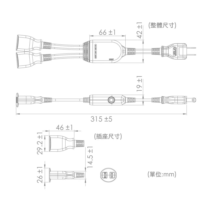 【台製附發票】180度可轉向插頭電源線組 1對2/3/4 15A/110V/1650W 30公分 0.3公尺 1尺