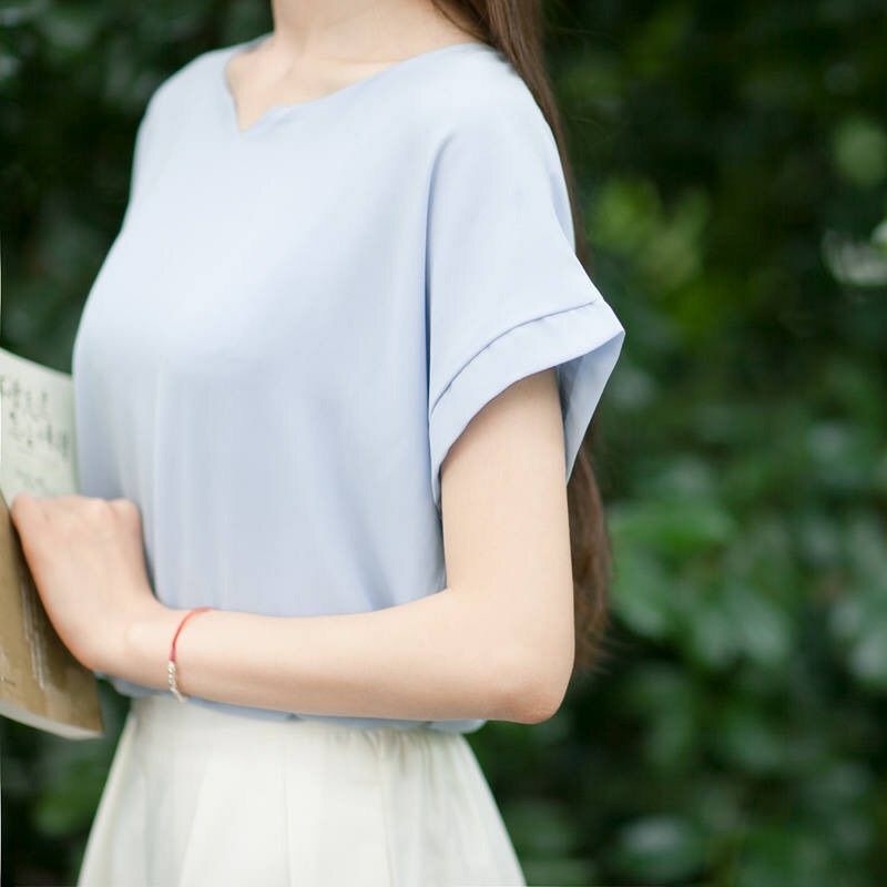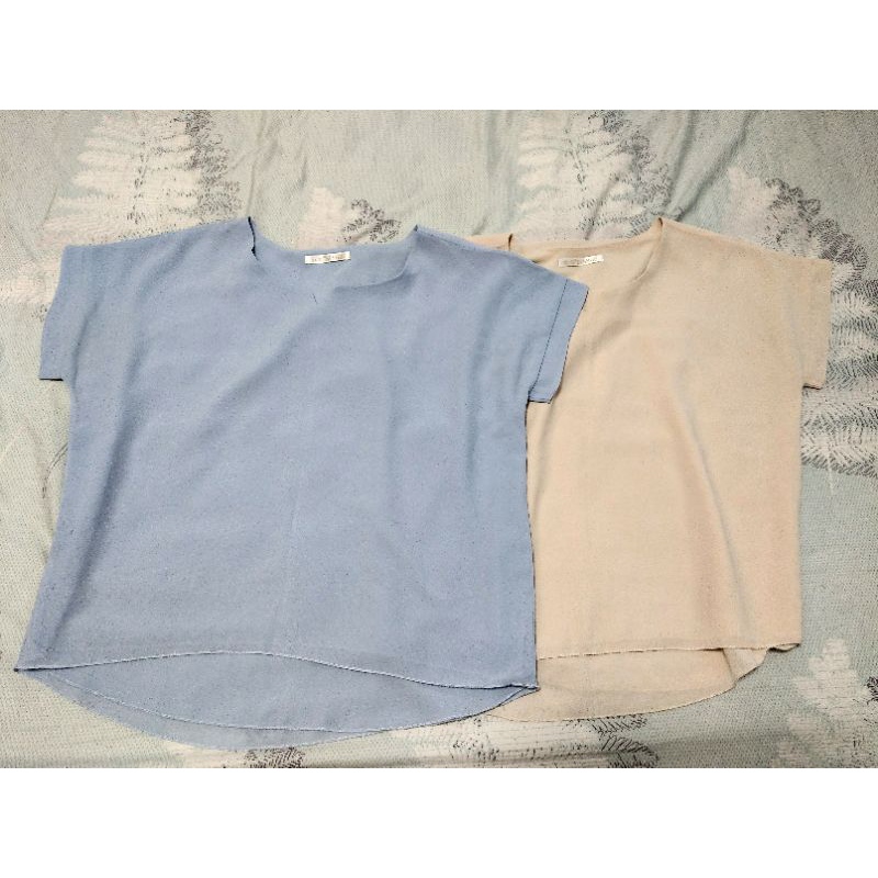 淘寶 裸色家 雙層雪紡 短袖 上衣 灰藍 杏