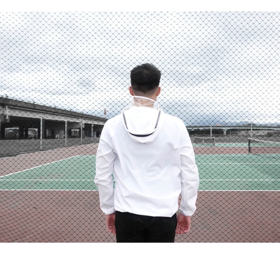 SOFO 防護外套 防疫外套 風衣 薄外套 薄風衣 / 男女款 白色 / 可拆面罩 拉鍊口袋 / 現貨
