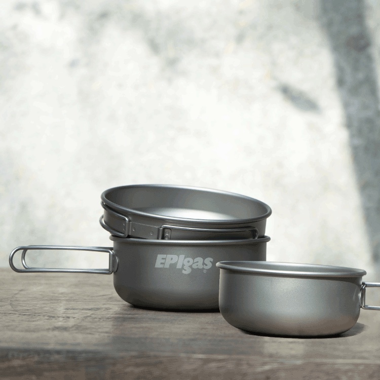 【JIALORNG 嘉隆】EPIgas 鈦鍋具組 T-8001【兩鍋一蓋】附收納袋 餐具 登山鍋具 露營 鈦鍋 ● 雙夾