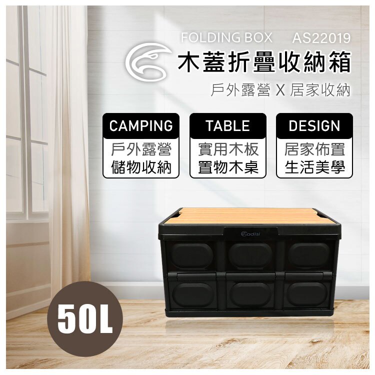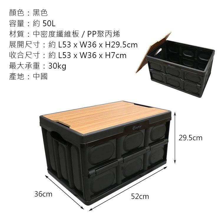 【JIALORNG 嘉隆】ADISI 木蓋折疊收納箱 AS22019 (50L) / 黑色